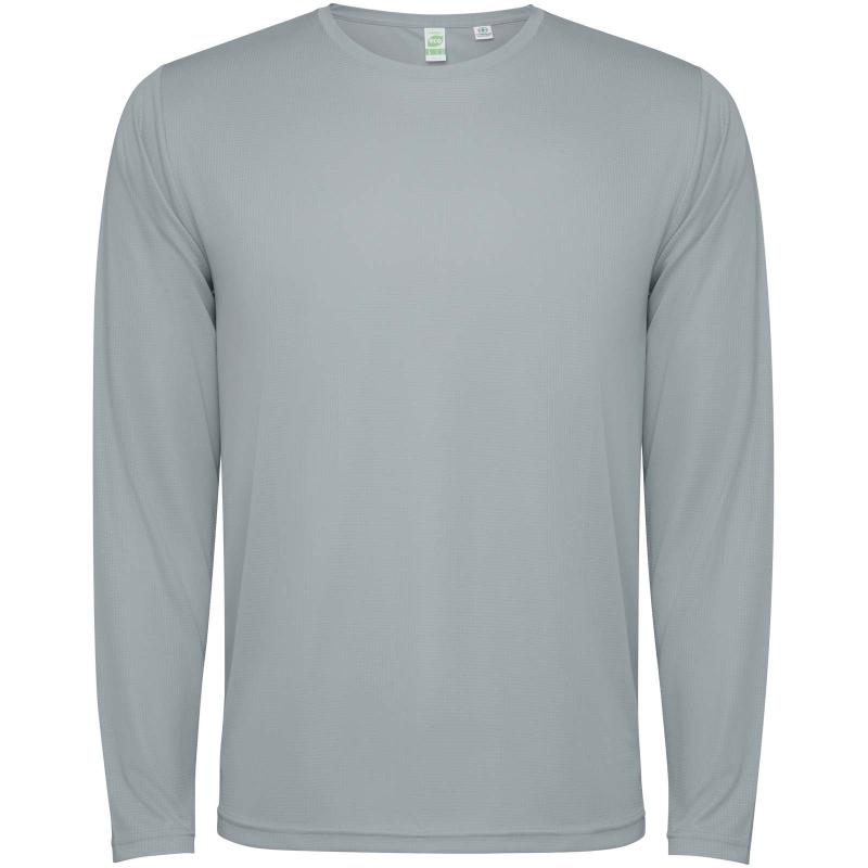 Kids long-sleeve unisex technical t-shirt. Collar with matching seams. Back hem slightly longer than the front. Side seams shifted forward.