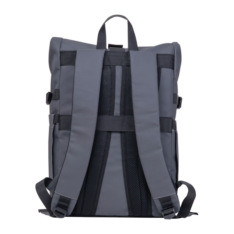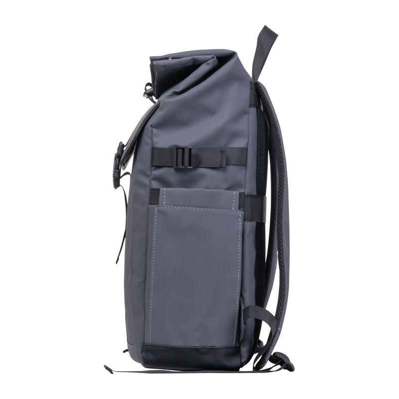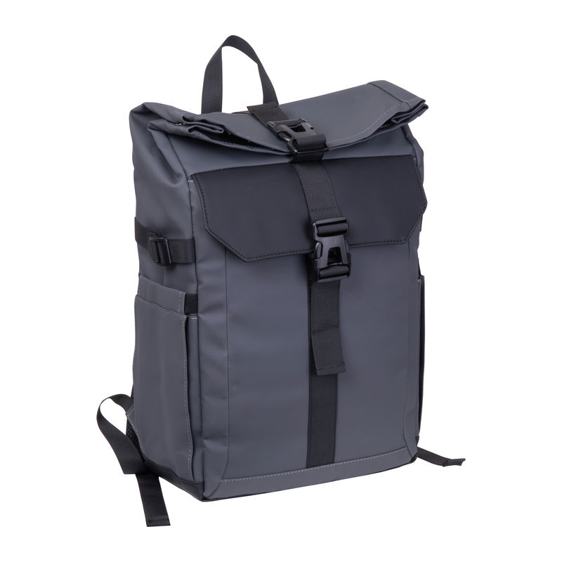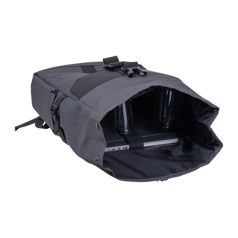 Ferraghini courier backpack made of 600D polyester with a laptop compartment, padded shoulder straps, a large front pocket, and 18-liter capacity.