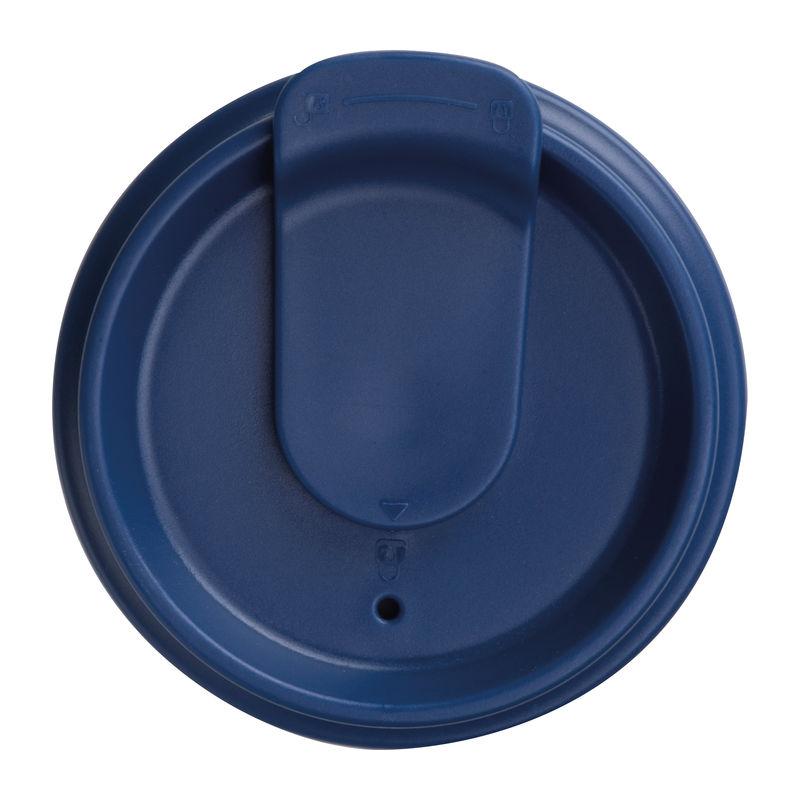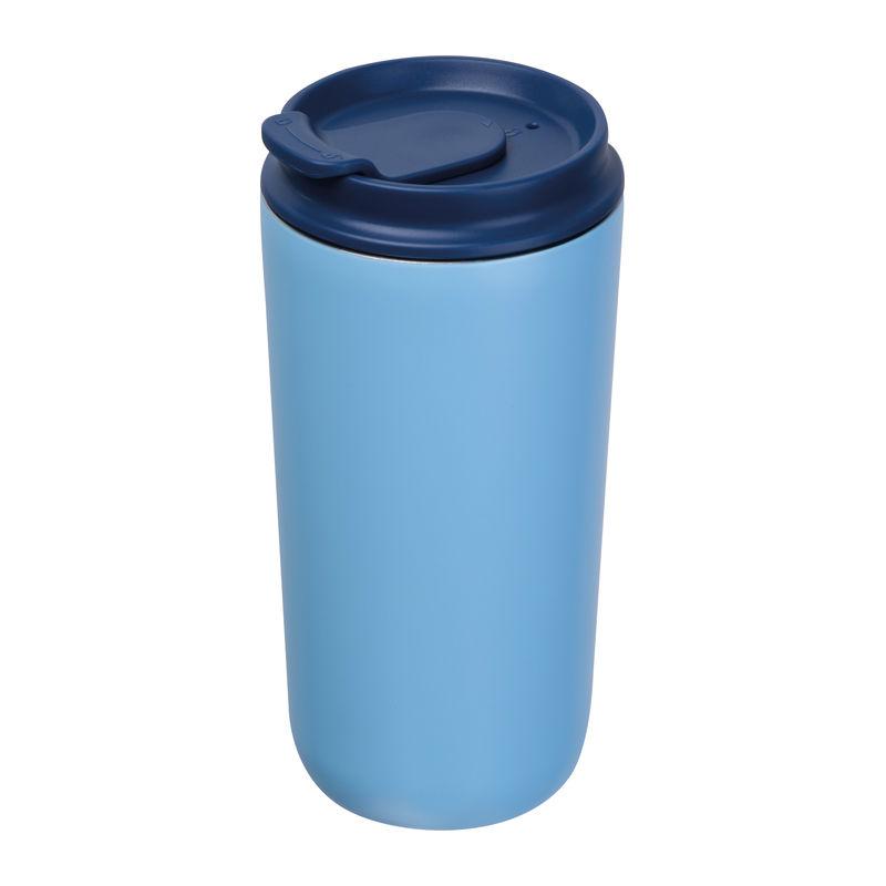Set consisting of a notebook with 192 lined pages (96 sheets, A5, 100 g/m², recycled paper, PU cover with bookmark, rubber strap), a 500 ml stainless steel cup (leak-proof), and a high-quality aluminium twist ballpoint pen with blue ink.