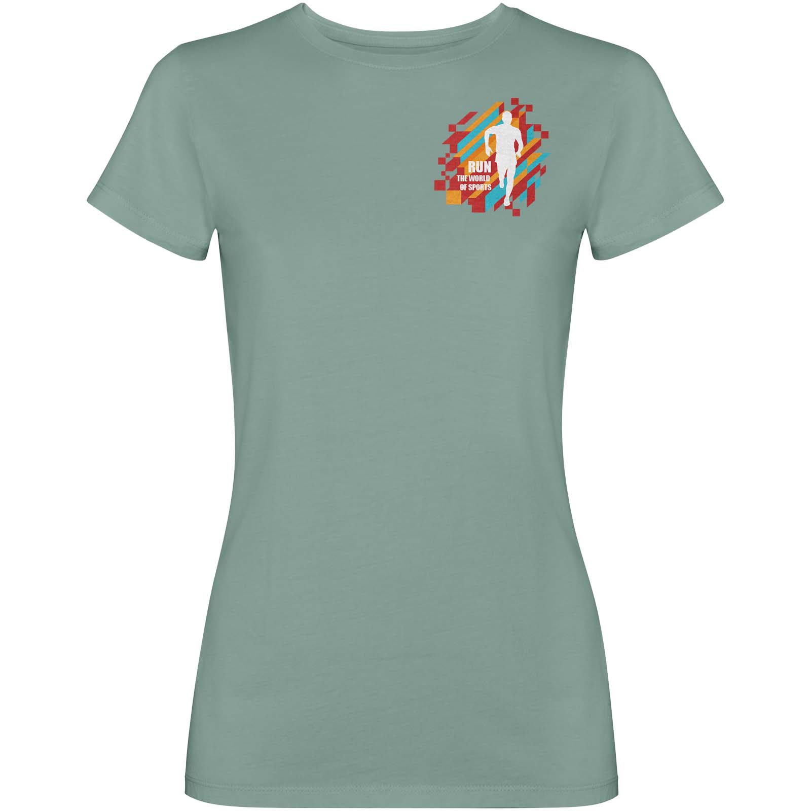 Short sleeve t-shirt for women. Acid-wash finish .1x1 ribbed crew neck and side seams. Tone-on-tone cover stitch at the neck.