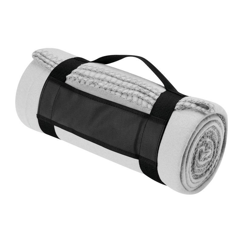 Large comfortable and cosy fleece blanket with handy carrying strap and fancy stitching. We will print your logo on the carrying strap or stitch it to the blanket.