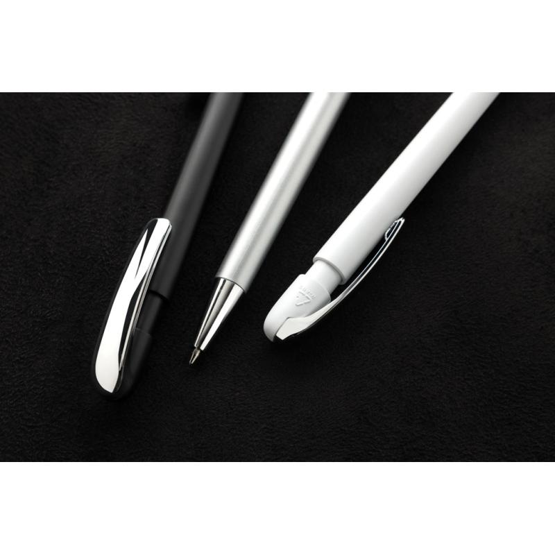 Ballpoint pen with stunning chrome metal clip design. Including ca. 1200m writing length German Dokumental® blue ink refill with TC-ball for ultra smooth writing. Made with 55% recycled ABS RCS Certified.