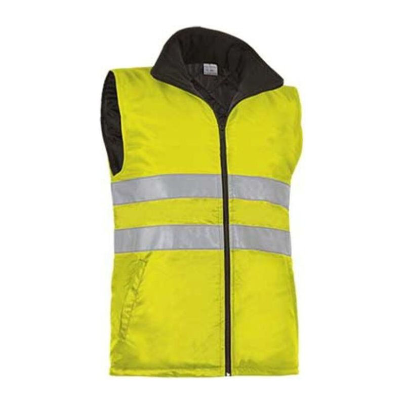 Outside waterproof fabric with polyurethane coating. Padded inside with lining 200 grs/m². Sewn retroreflective bands around the body. Central closure with double zip. Inside fleece neckband (more confortable). 2 lower pockets. Inside zip pocket. 10 units per box: 1 size, 1 color. Individual bag.
