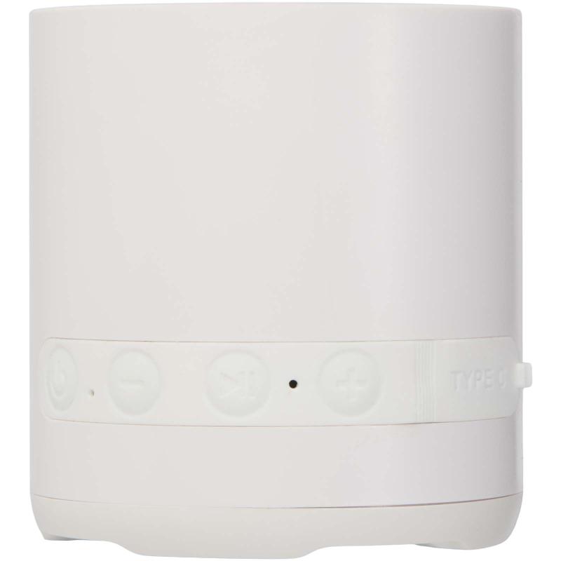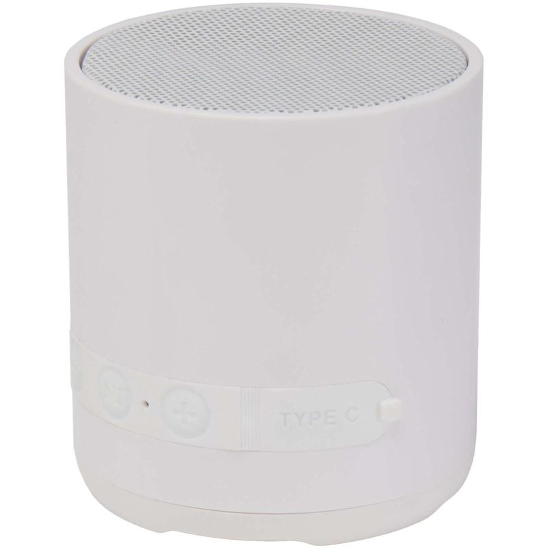 The Hunor 3W wireless Bluetooth® speaker is made from recycled plastic, and features a Type-C charging port, volume controls, a Play/Pause/Call button, and a built-in microphone. Thanks to the TWS (True Wireless Stereo) functionality, you can pair two speakers for a stereo sound experience.