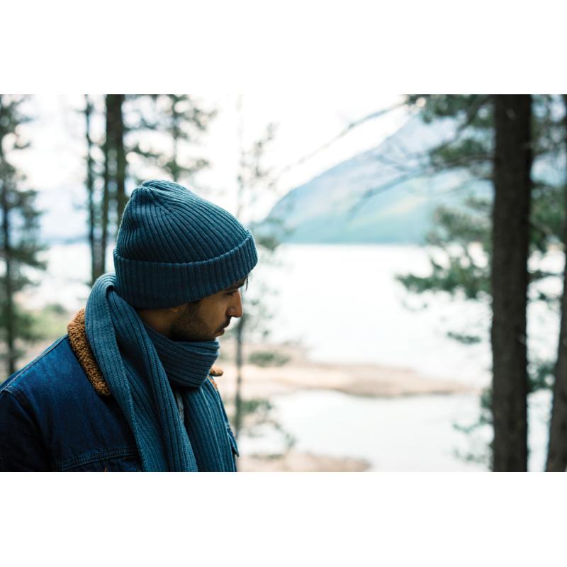 A beautiful double layer knitted beanie suited for anyone. A classic fold over beanie for an effortless look that will keep you warm during the cold days. The beanie contains Polylana®. Polylana® is a low-impact alternative to 100% acrylic fibre using less energy and water. Incorporating the AWARE™ tracer that validates the genuine use of recycled materials. 2% of proceeds of each Impact product sold will be donated to Water.org. One size fits all.Composition: 30% recycled polyester, 30% polyester, 40% acrylic.