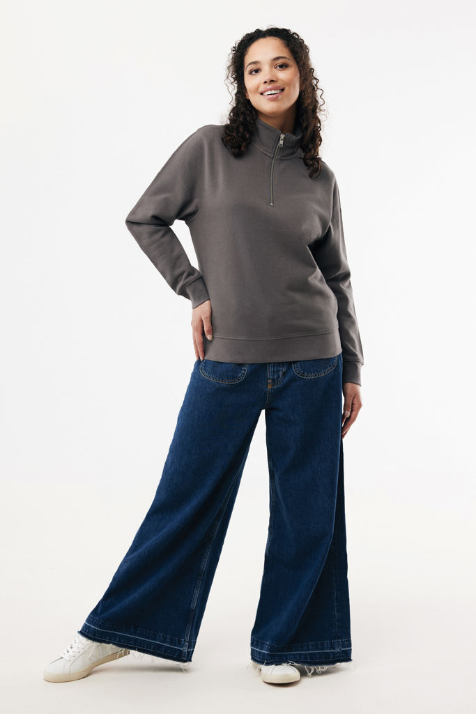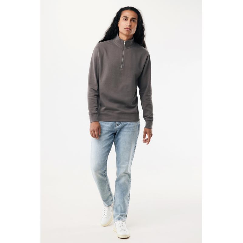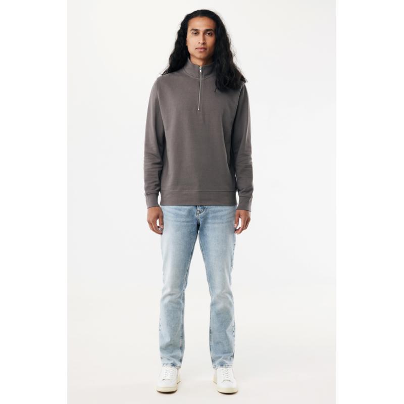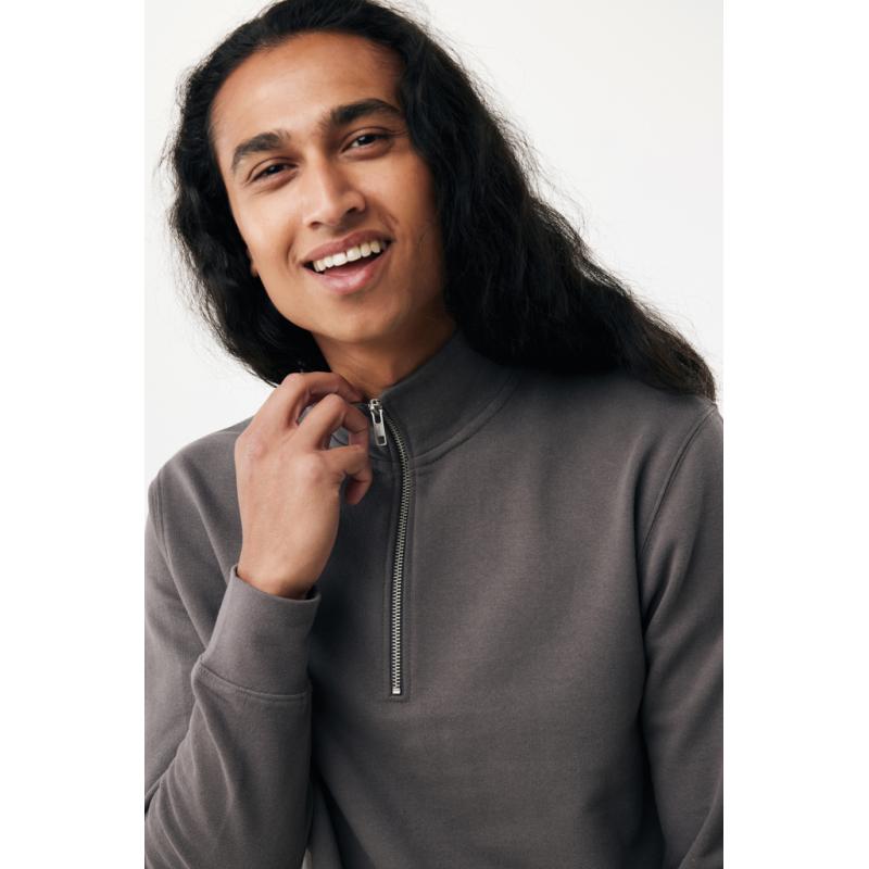 Unisex modern fit quarter zip sweater made from 100% cotton, of which 30% is recycled and 70% organic, in 300 G/M². The quarter zip sweater has a self-fabric collar, set-in long sleeves and 1x1 rib at cuffs and hem. The inside of the fabric is French terry. The use of genuine recycled & organic fabric materials and environmental impact claims are guaranteed, by using the AWARE™ disruptive physical tracer and blockchain technology. By scanning the QR code, you will gain access to a dedicated digital passport of the product. 2% of proceeds of each sold product will be donated to Water.org. This product is OEKO-TEX® STANDARD 100 Centexbel certified. Due to the nature of recycled yarns, impurities and colour variations may appear.