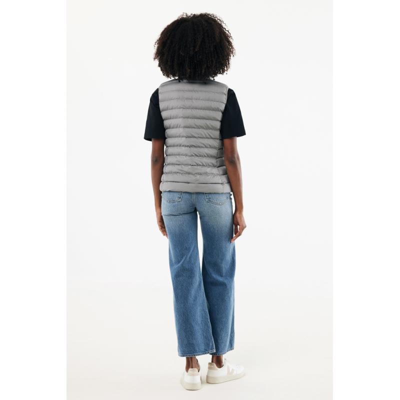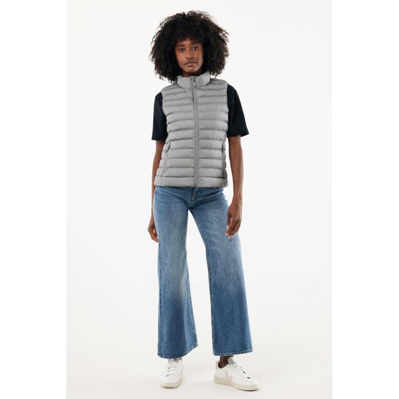Women’s medium fit bodywarmer made from 100% post-consumer recycled polyester. The bodywarmer is fully quilted with 100% recycled polyester pearl filling. It has a reversed zipper at the front and practical zip pockets in the side panel seams. All zippers have extra zip pullers in matching colour for a refined look. The armholes have elastic binding and all seams at the inside are clean finished with recycled binding. Fluorine/PFAS free water repellent impregnation. The use of genuine recycled fabric materials and environmental impact claims are guaranteed, by using the AWARE™ disruptive physical tracer and blockchain technology. By scanning the QR code, you will gain access to a dedicated digital passport. 2% of proceeds of each sold product will be donated to Water.org. This product is OEKO-TEX® STANDARD 100 certified. The Meru bodywarmer is also available in men fit.