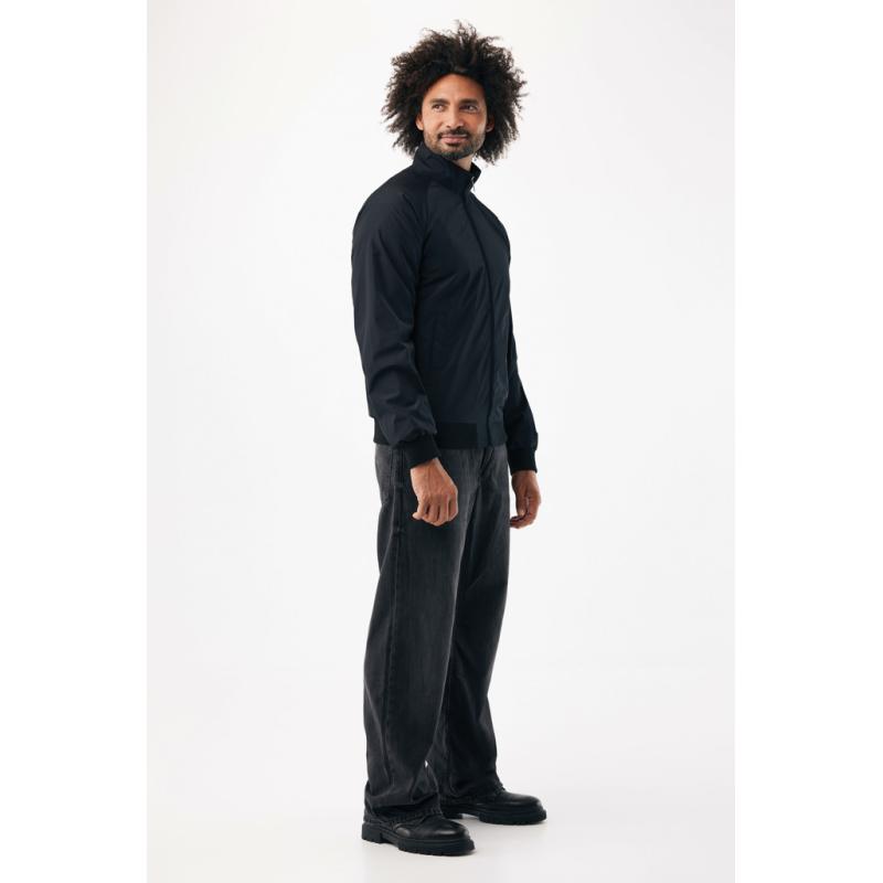 Unisex urban jacket made from 100% recycled polyester, with RTPU membrane (GRS certified). This jacket was designed for casual chic wear. CF zip is made from nickel-free metal with a premium metal puller and cord filling along the zip length, two welt pockets at sides with hidden snap closure, collar in self-fabric, sleeve and bottom hem with elastic rib for soft touch. Jacket is lined and has hidden zip at bottom hem and left wearer’s chest for easy decoration. Full garment is stitched with recycled polyester sewing thread. At back neck there is a tear-off size label with 1 piece iqoniq craft hangtag, care label at the left inside side seam. The use of genuine recycled fabric material and environmental impact claims are guaranteed, by using the AWARE™ disruptive physical tracer and blockchain technology. By scanning the QR code, you will gain access to a dedicated digital passport.