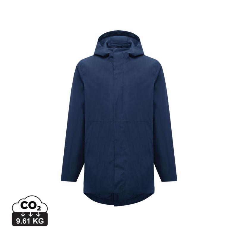 Unisex padded waterproof parka, made from 100% recycled polyester. The jacket is 4.000 mm waterproof, breathable and wind resistant. It has all features of a classic parka: longer back length, back slit, 2-way CF reversed zipper, covered by an extra front placket with four hidden snaps, clean sleeve cuffs with an extra inside half cuff, hood with stoppers at inside collar, horizontal deco seams. It is padded with 100% recycled polyester sheets and is lined with fine taffeta. On the inside there is a hidden zip at bottom hem and left wearer’s chest for easy decoration. Full garment is stitched with recycled polyester sewing thread. At back neck there is a tear-off size label with an iqoniq craft hangtag, care label at the left inside side seam. The use of genuine recycled fabric material and environmental impact claims are guaranteed, by using the AWARE™ disruptive physical tracer and blockchain technology. By scanning the QR code, you will gain access to a dedicated digital passport.