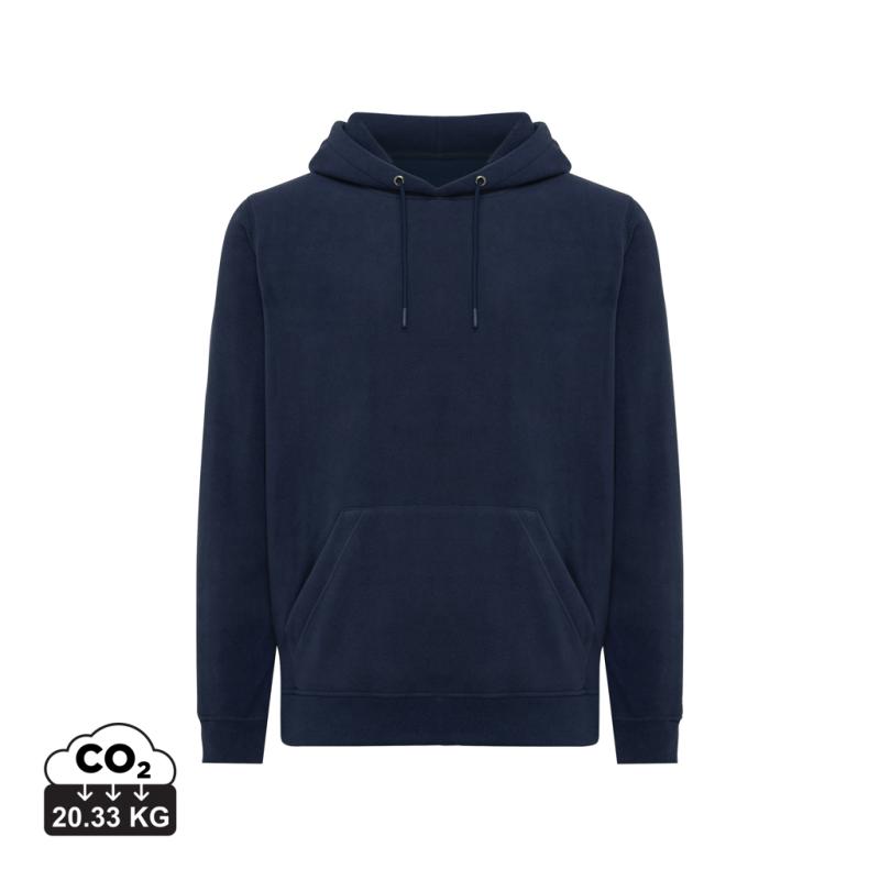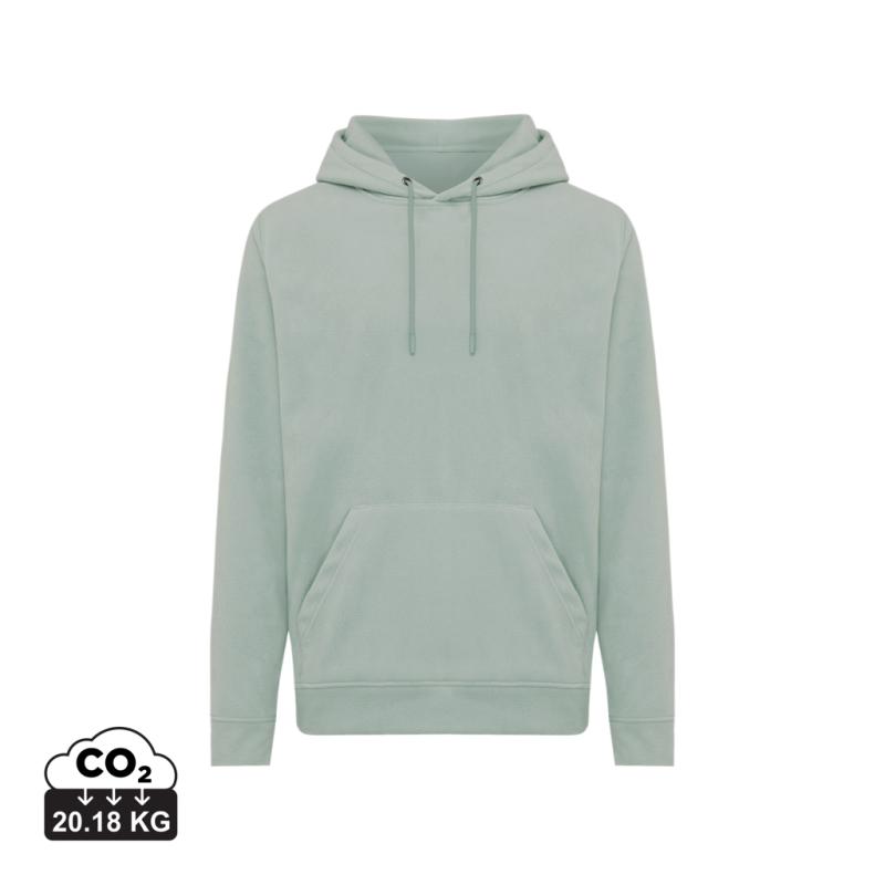 Unisex medium fit microfleece hoodie made from 100% post-consumer recycled polyester in 240 G/M². This fleece hoodie envelops you in softness and warmness. It has a convenient kangaroo pocket, double-layered hood with a tonal drawstring and metal eyelets. The Inside half-moon in woven fabric offers a perfect personalized inside neck print. Bottom hem and sleeve cuffs are made from self-fabric for extra softness. The use of genuine recycled & organic fabric materials and environmental impact claims are guaranteed, by using the AWARE™ disruptive physical tracer and blockchain technology. By scanning the QR code, you will gain access to a dedicated digital passport of the product. 2% of proceeds of each sold product will be donated to Water.org. This product is OEKO-TEX® STANDARD 100 certified.
