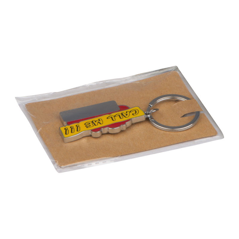 Keyring made of metal with coloured lacquered front. We will engrave your logo on the plate.