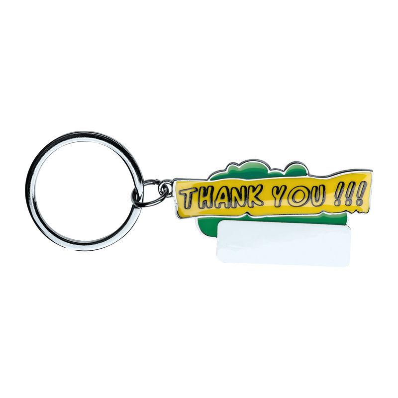 Keyring made of metal with coloured lacquered front. We will engrave your logo on the plate.