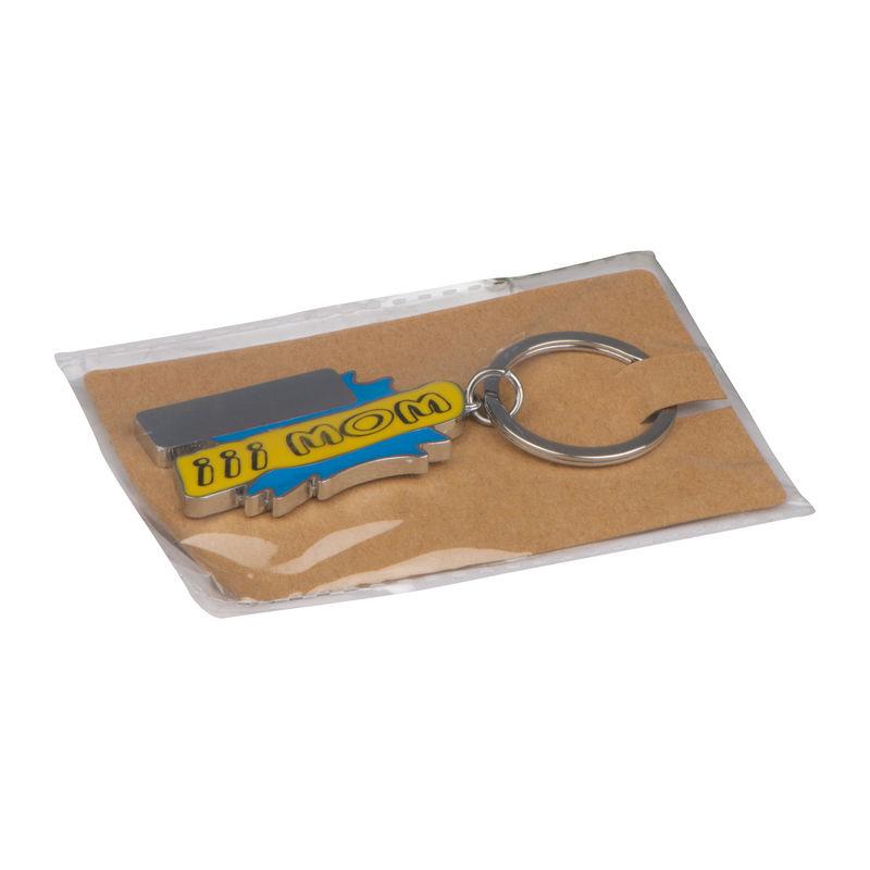 Keyring made of metal with coloured lacquered front. We will engrave your logo on the plate.