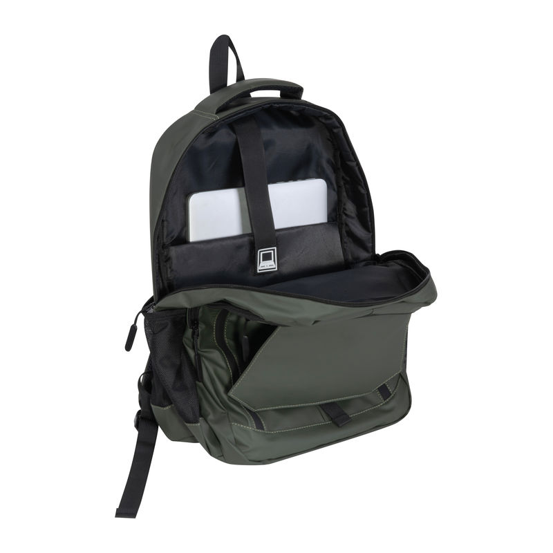 Backpack made of high-quality soft-touch PU. This backpack features two large main compartments, two side pockets, water-repellent front zippers, padded shoulder straps, as well as a laptop compartment and front pocket. Your logo will be printed on the front of the bag.
