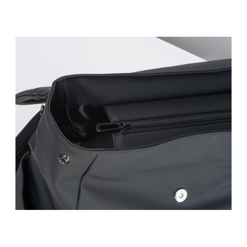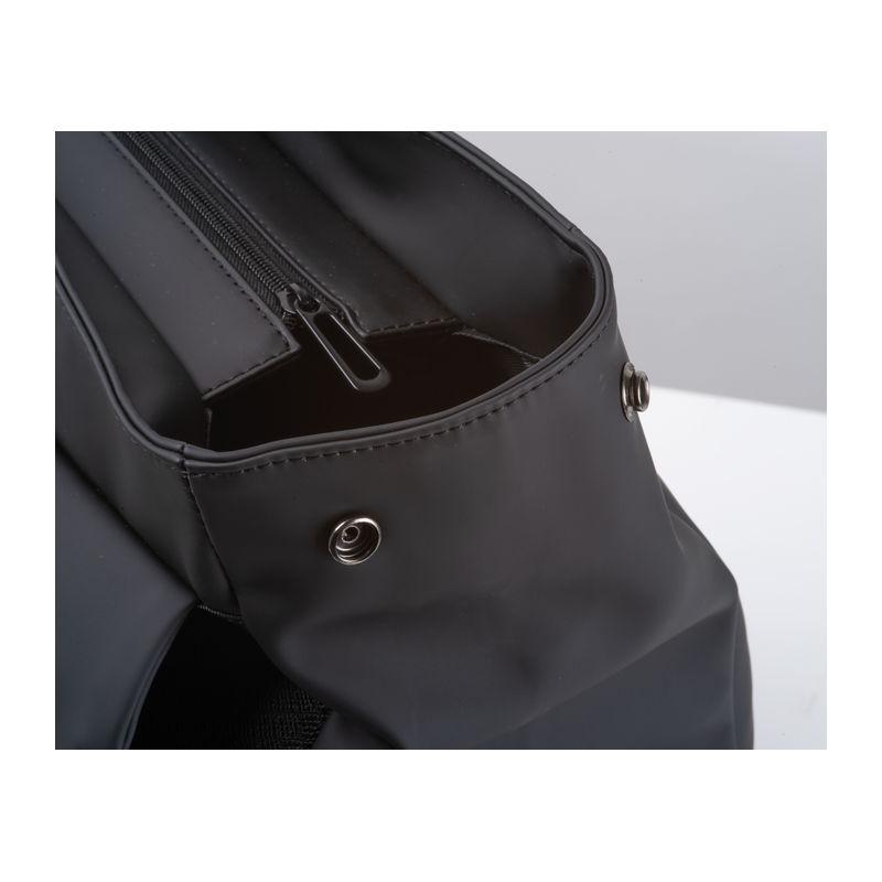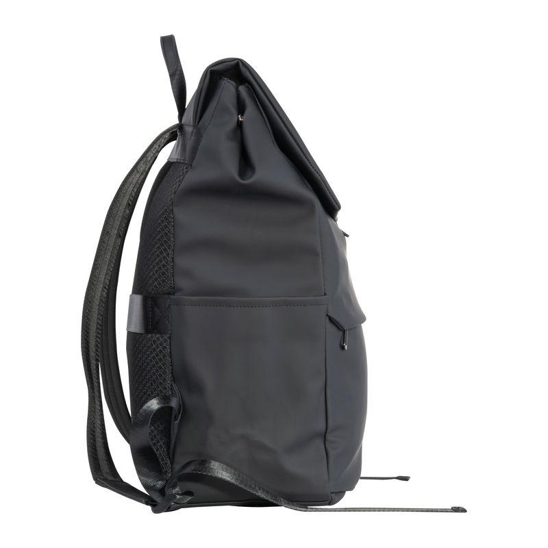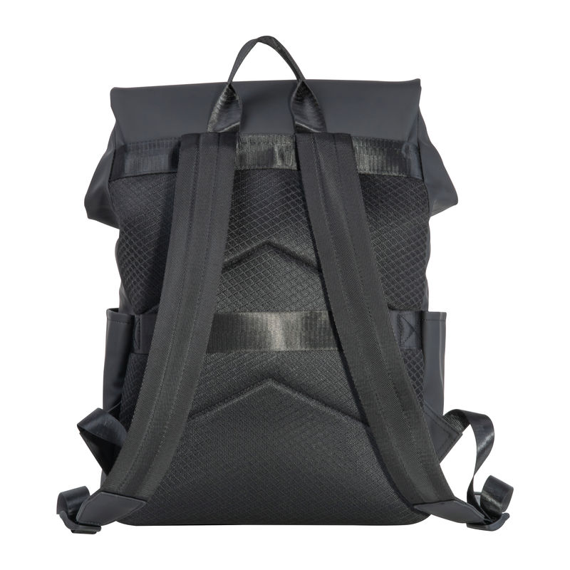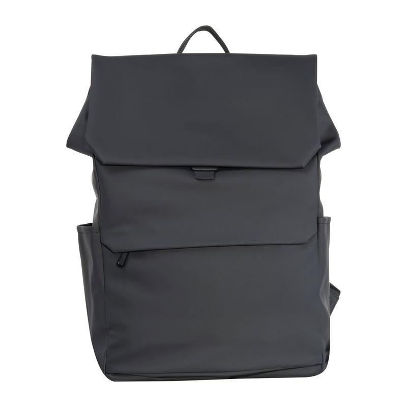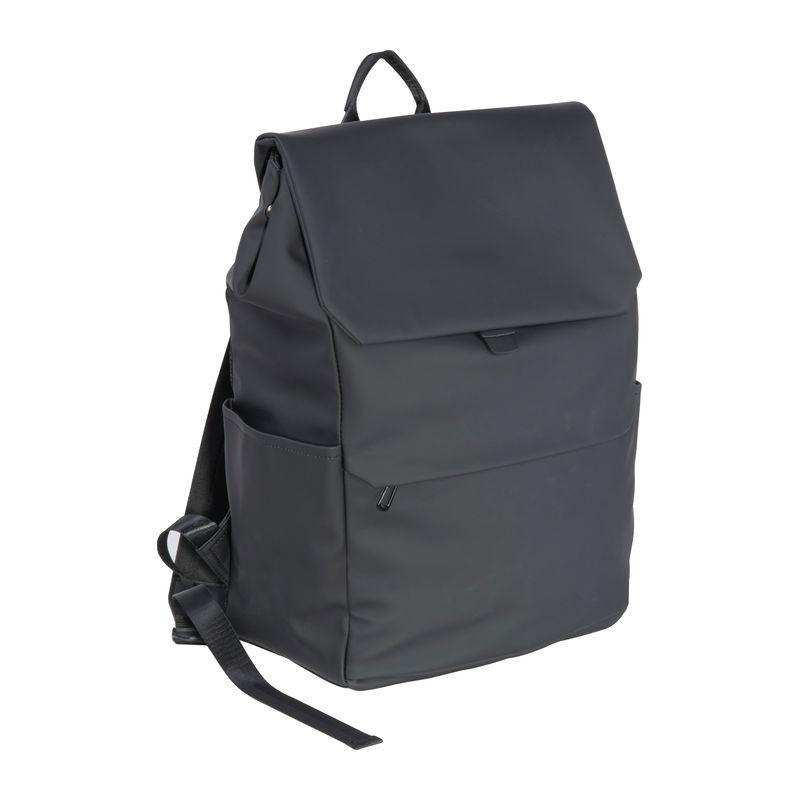 High-quality laptop backpack made of soft-touch PU and faux leather. The backpack offers a spacious main compartment and laptop section, two side pockets, a front pocket with a hidden zipper, and a trolley strap. The flap closes magnetically. Your logo will be printed on the front of the bag.