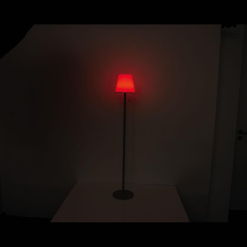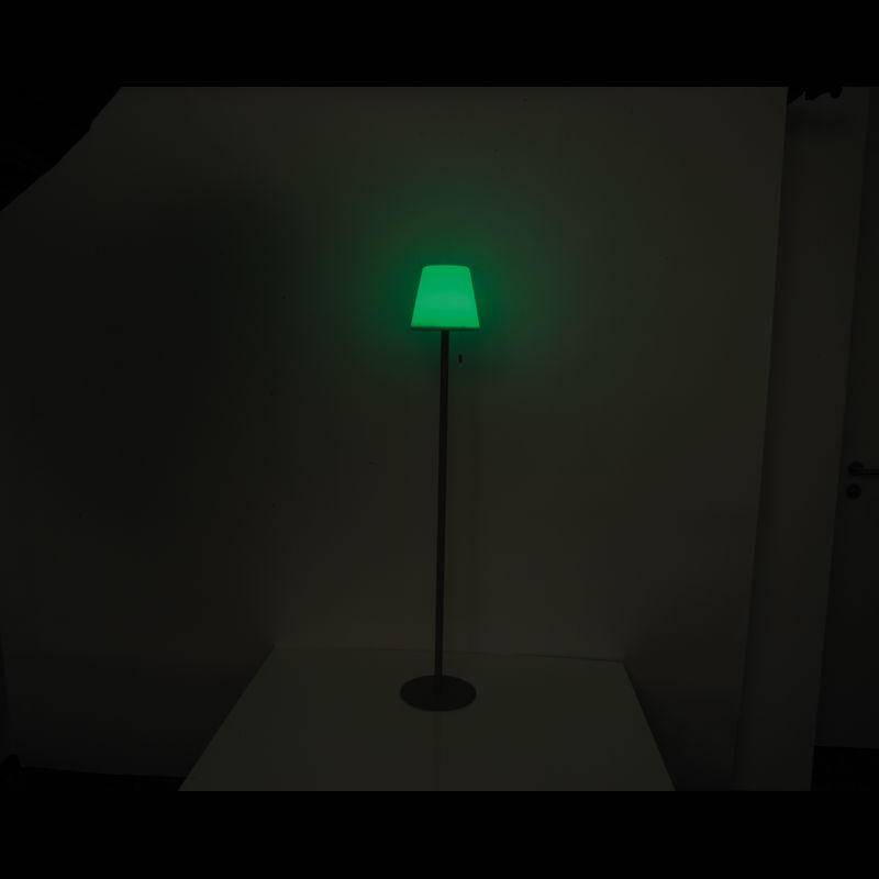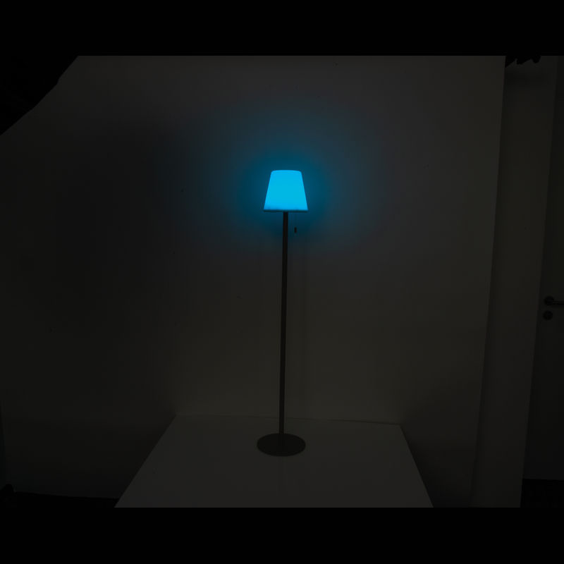 Large outdoor lamp with color change and stylish design (Ø 19 × 105 cm). Runtime of 8–10 hours, 3.7V, and 2,400 mAh rechargeable batteries, lampshade is made from PP , lampbase is metal. Perfect for outdoor areas to create a cozy and colorful lighting atmosphere.