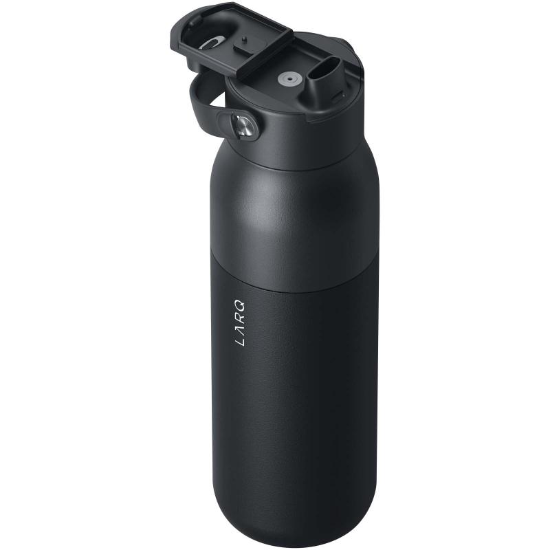 The LARQ Swig Top 1000 ml insulated stainless steel water bottle is a wide-mouth, water-filtering bottle designed to deliver cleaner, better-tasting water. Its included filter enhances water quality through a 2-stage filtration and purification process. The insulated stainless steel body keeps drinks at the desired temperature for up to 24 hours, while the wide opening makes it easy to fill and clean. The cap features a built-in, detachable soft-touch handle for convenient carrying. Filters should be replaced regularly for optimal performance.