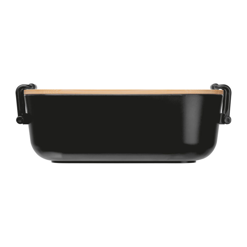 Lunchbox with bamboo lid and clamp closure keeps meals securely sealed. With a capacity of 750 ml, it offers plenty of space for various meals. Your advertisement will be engraved on the bamboo lid.