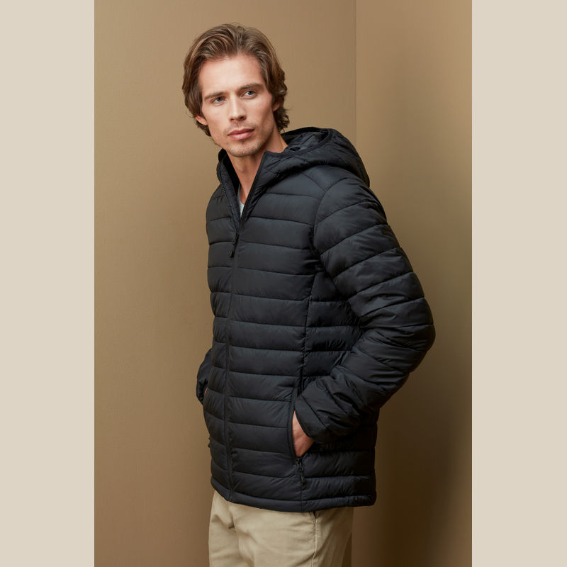 This padded jacket for men offers great heat insulation despite its light weight. With handy 'stow-away' function, The jacket folds down into its own inside pocket, saving space on outdoor adventures.