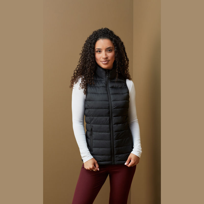This padded vest for women offers great heat insulation despite its light weight. With handy 'stow-away' function, The vest folds down into its own inside pocket, saving space on outdoor adventures.