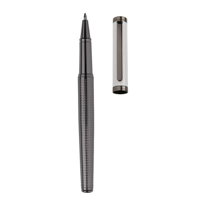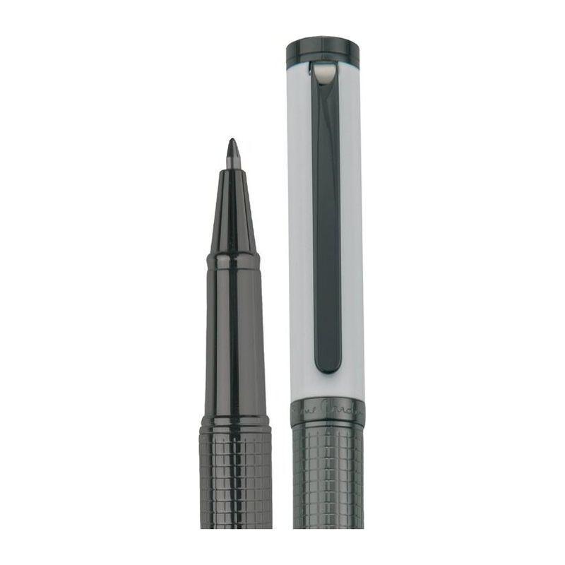 The branded metal roller is designed in white and black. The lower part of its body is decorated with luxurious engraving in gunmetal color and the roller tip is protected by the cover. It contains a branded German Schmidt® cartridge in blue and a re
