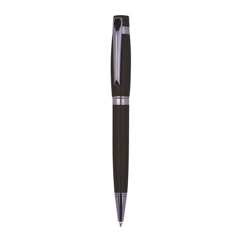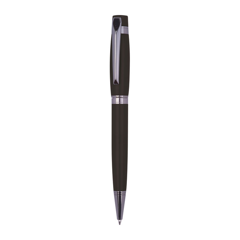 Mark Twain metal ballpoint pen with a subtle Mark Twain logo on the clip and a writing length of 800 m, blue ink. Packaged in a folding box with a glossy Mark Twain logo.