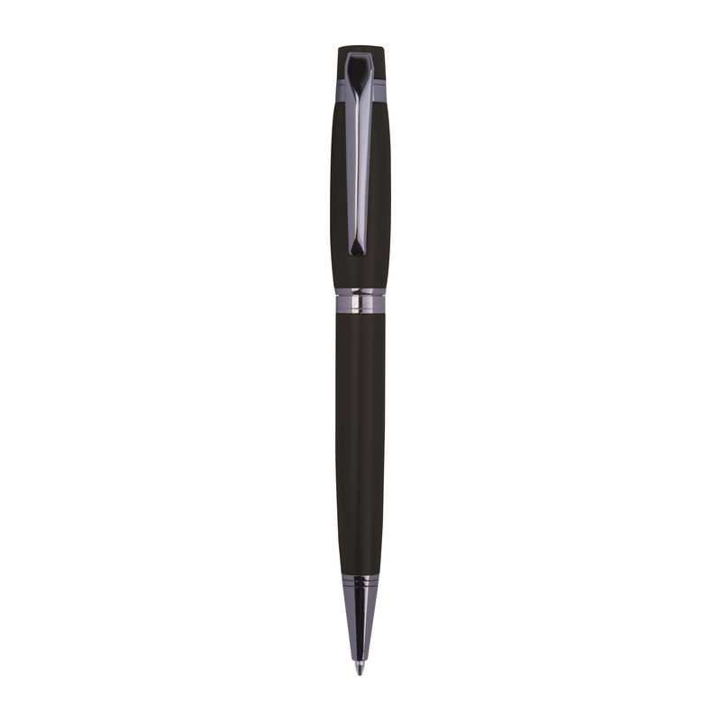 Mark Twain metal ballpoint pen with a subtle Mark Twain logo on the clip and a writing length of 800 m, blue ink. Packaged in a folding box with a glossy Mark Twain logo.