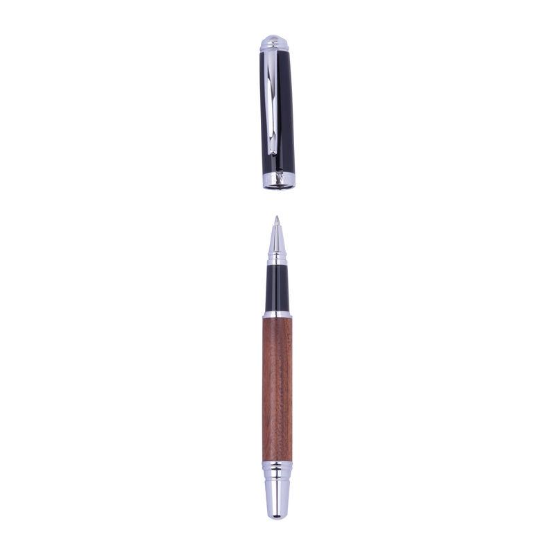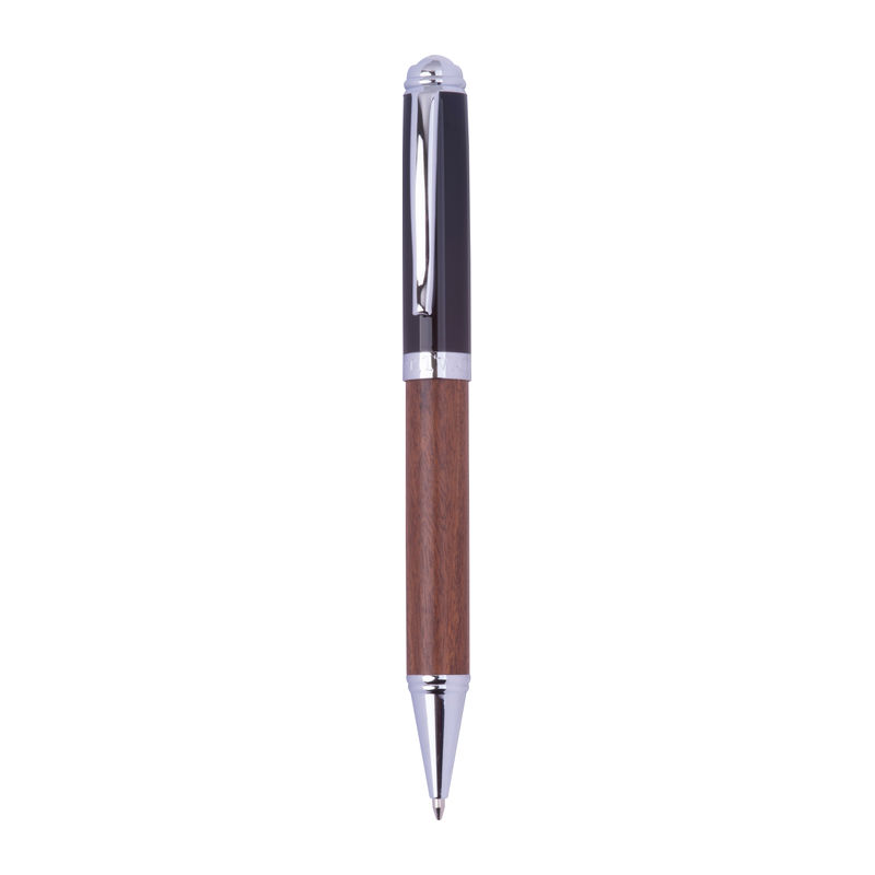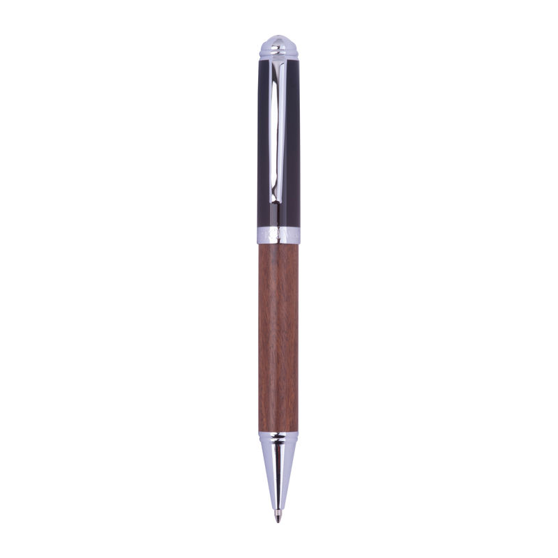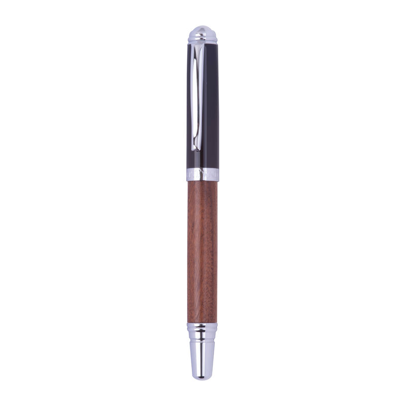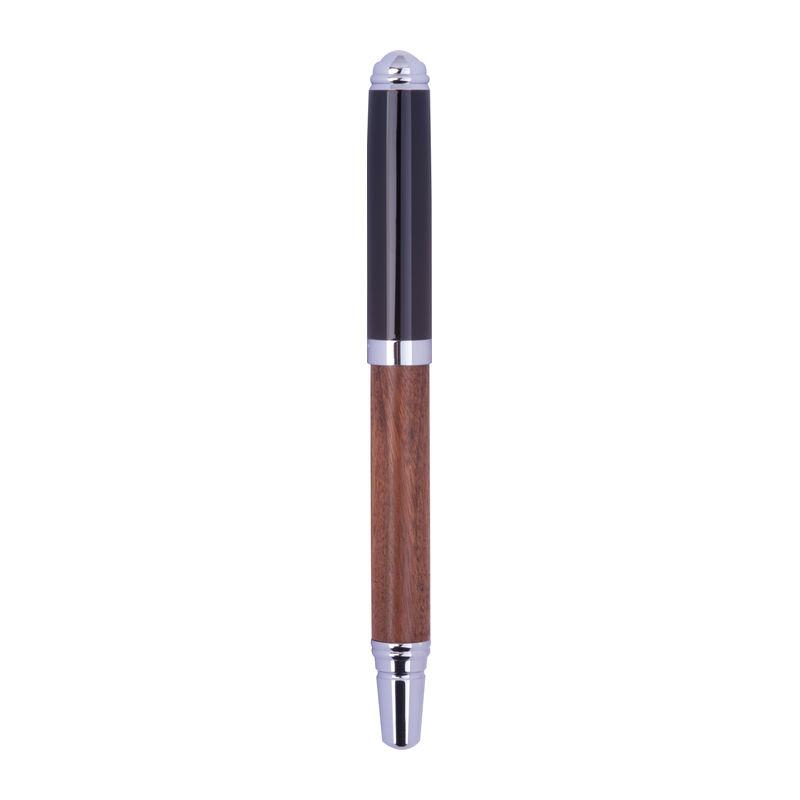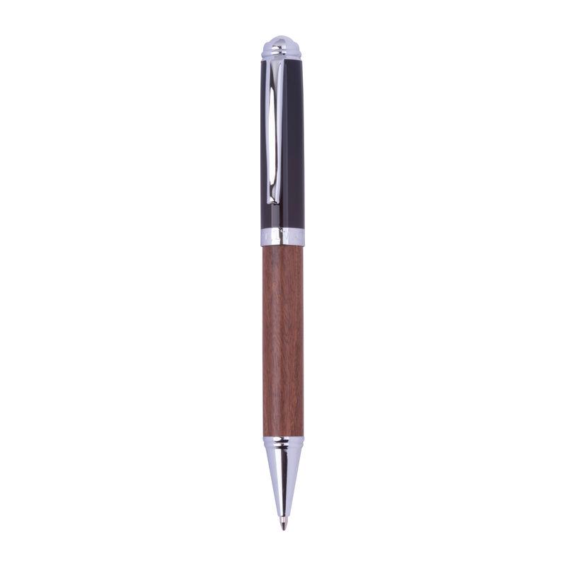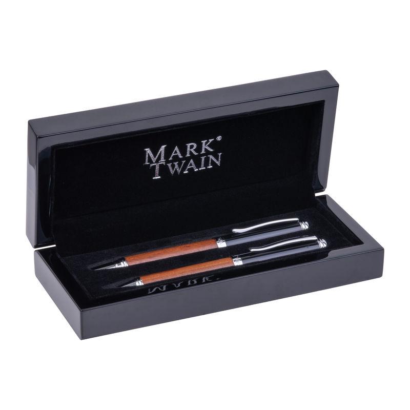 Mark Twain writing set, blue ink, consisting of a ballpoint pen (1200 m writing length) and a rollerball pen (400 m writing length) made of wood and stainless steel, small Mark Twain logo on the silver ring. Delivered in a high-quality black box.