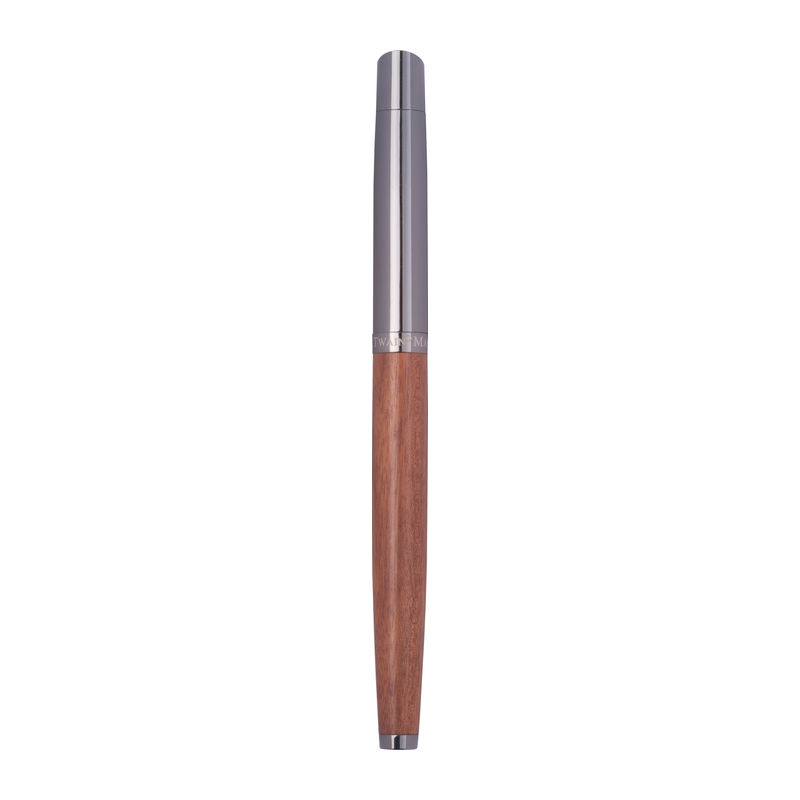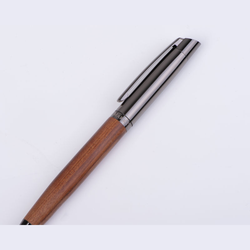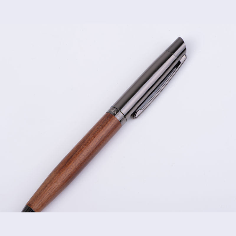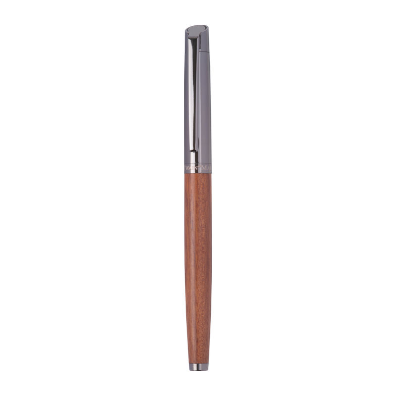 Mark Twain writing set made of stainless steel and wood. Ballpoint pen writes in blue, 1200 m writing length; rollerball writes in blue, 400 m writing length.