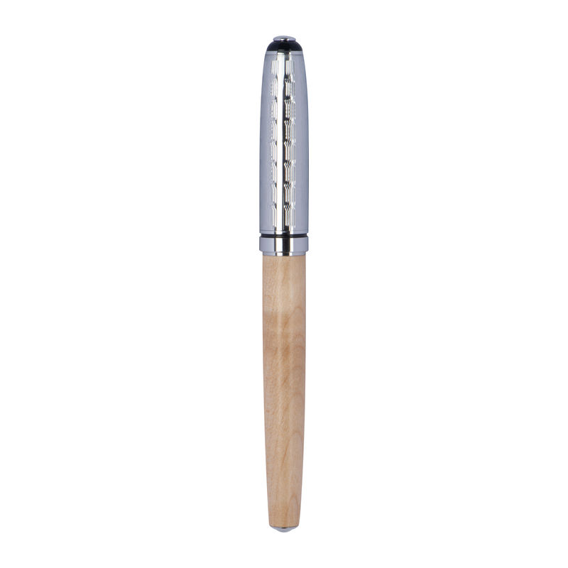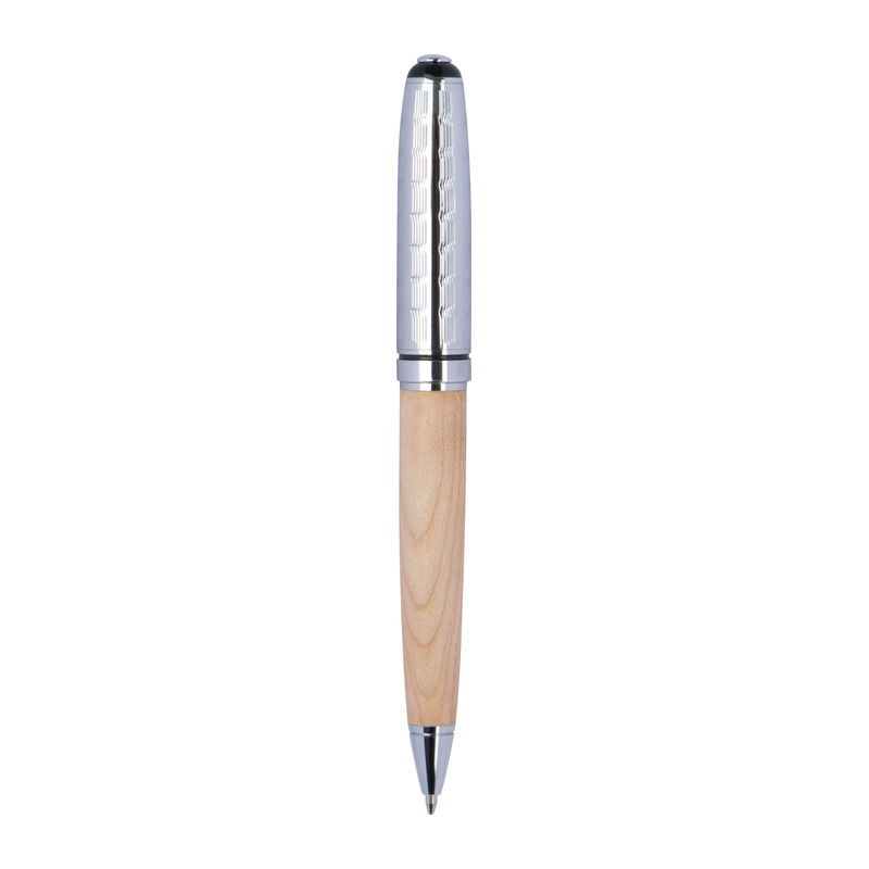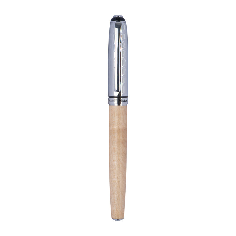 High-quality Mark Twain writing set consisting of a blue twist ballpoint pen with a large refill and a metal rollerball with a wooden body. The set is packed in a natural wooden box. Your logo will be lasered to the right of the clip, the price for the engraving is for both writing instruments.