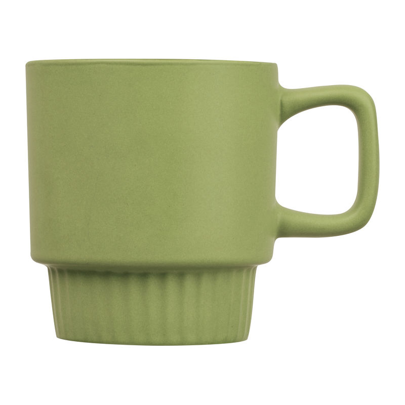 Ceramic mug with a ribbed lower section and a capacity of 300 ml. Matte finish, comfortable to hold, and ideal for hot beverages.
