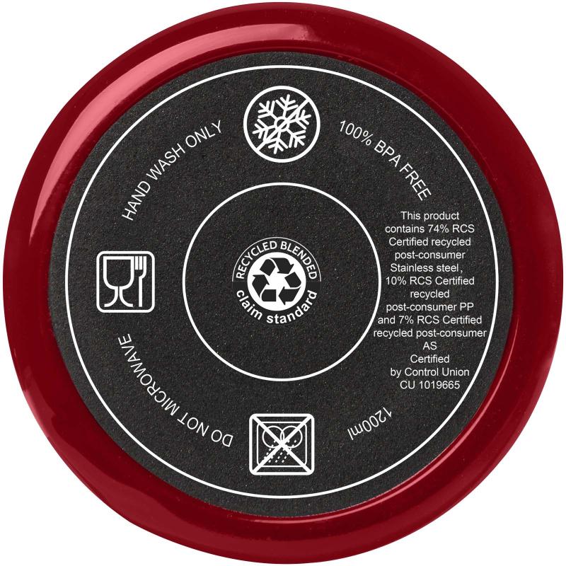 The Melbourne tumbler features double-wall air insulation, keeping drinks hot for up to 2 hours and cold for up to 4 hours. The inner wall of the tumbler is made from recycled plastic and the outer wall is made from RCS-certified recycled stainless steel. The tumbler holds 1200 ml so you can stay hydrated in style all day long. Features a splash-proof dual-vent lid with a twist-lock cap. Comes with a food-grade recycled straw. Hand wash only.