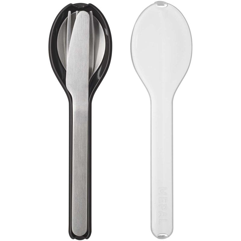 This stylish and practical Ellipse cutlery set includes a knife, fork, and spoon, all made of stainless steel. The cutlery is stored in a compact plastic holder. Dishwasher safe.
