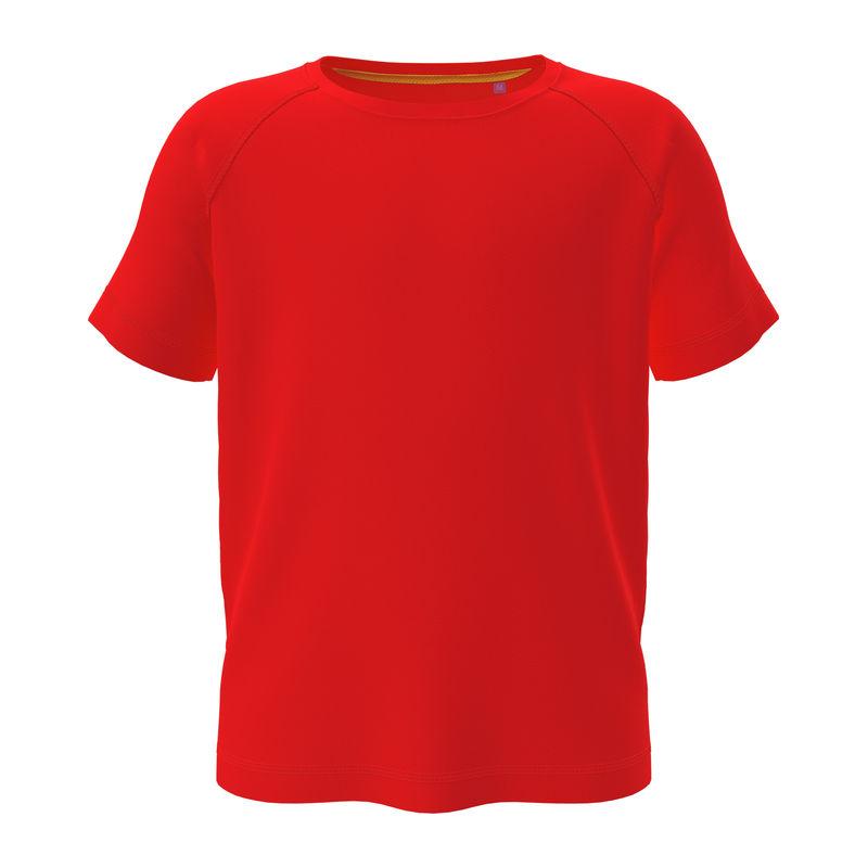 Modern and stretchy sports T-shirt for children, with raglan sleeves made of quick-drying, breathable mesh-material. Contrast neck tape, decorative flatlock seams and excellent freedom of movement.