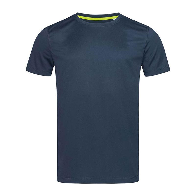 Modern and stretchy sports T-shirt for men made of quick-drying, breathable mesh-material. Contrast neck tape, decorative flatlock seams and excellent freedom of movement.