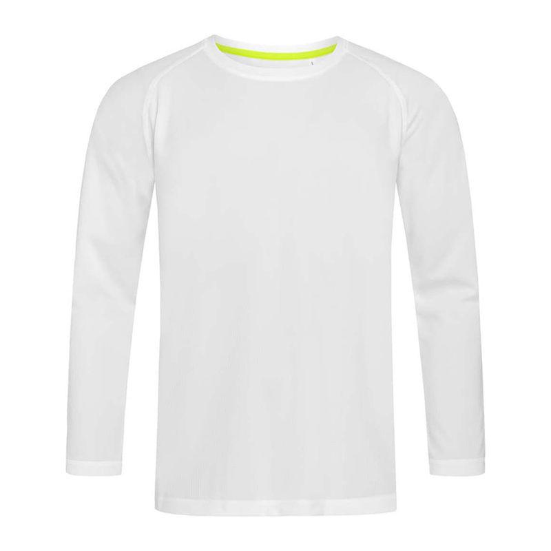 Modern and stretchy long sleeve sports T-shirt for men made of quick-drying, breathable mesh-material. Contrast neck tape, decorative flatlock seams and excellent freedom of movement.