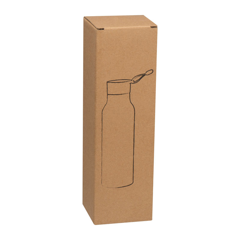Drinking bottle, made of aluminium with silicone lid, belt holder and 600 ml capacity. We will engrave your logo on the bottle.