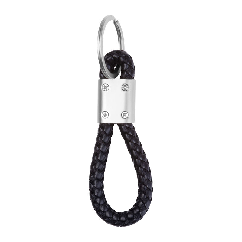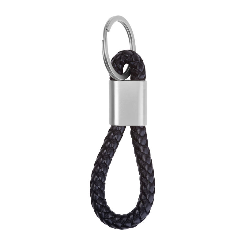 Metal keychain with durable PU cord.