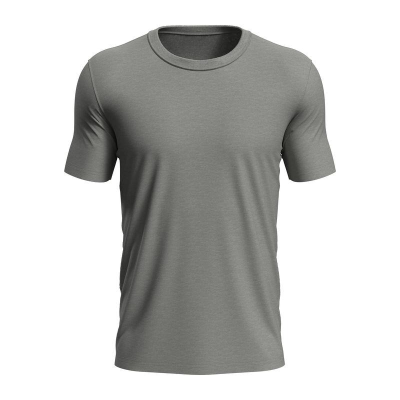 Fitted T-shirt for men features collar with rib binding and made of durable single jersey cotton.
