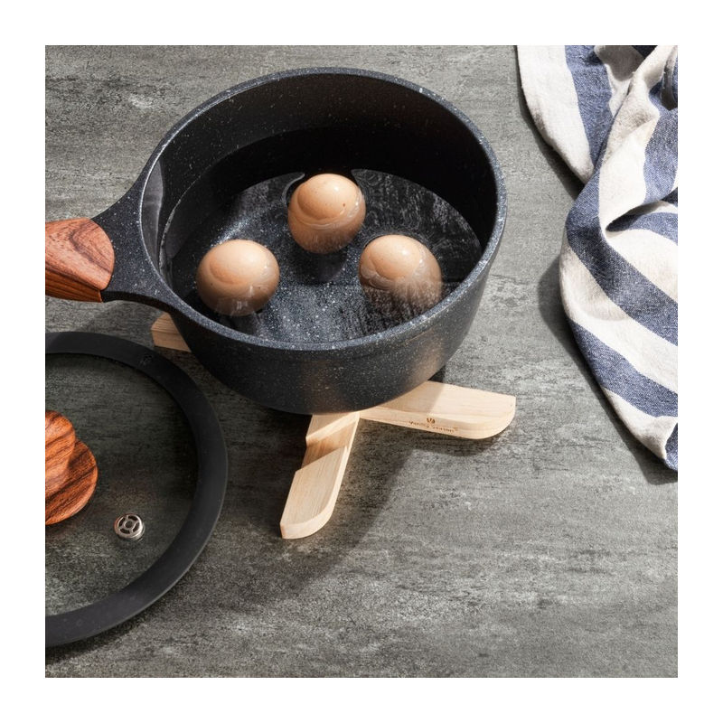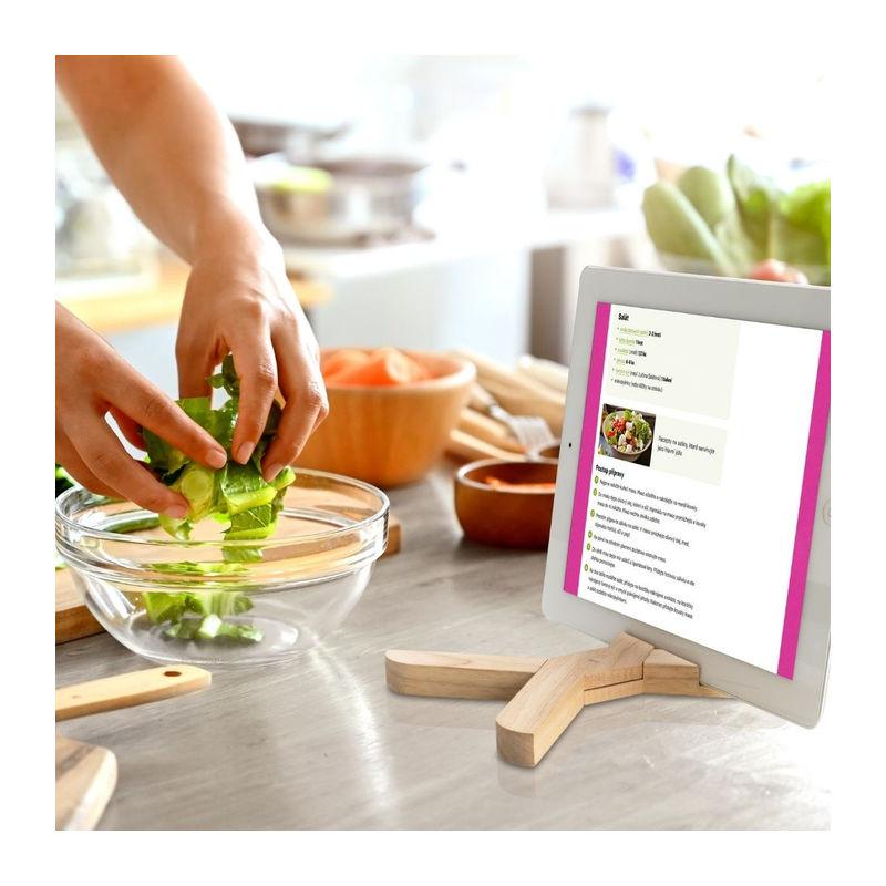 A multifunctional folding pot mat that you will love in the kitchen. The mat is made of rubber wood and will protect your surfaces from hot pots. Due to the pot being placed on the four spread legs of the mat, the cooked food will cool down faster. The mat can also be used as a stand for a mobile phone or tablet, so you can have your favorite recipes at hand or watching a movie while cooking. Packed in a Vanilla Season gift box.