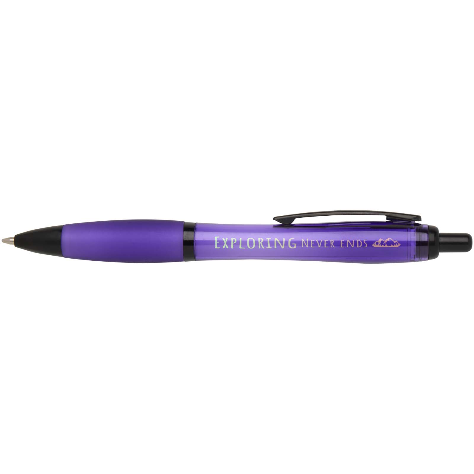 The Nash black edition ballpoint pen has a stylish curvy design with black trims, and is made from RCS certified recycled plastic, reducing the need for virgin materials. Thanks to the fast click action mechanism, the ballpoint pen is quick to use and has a soft grip, which reduces any tension on the writing surface. Ink colour: black. Writing length: 1000 meters. Nib size: 1.0 mm.