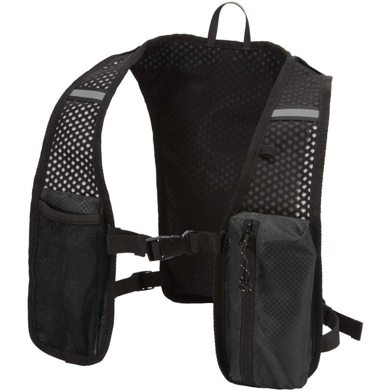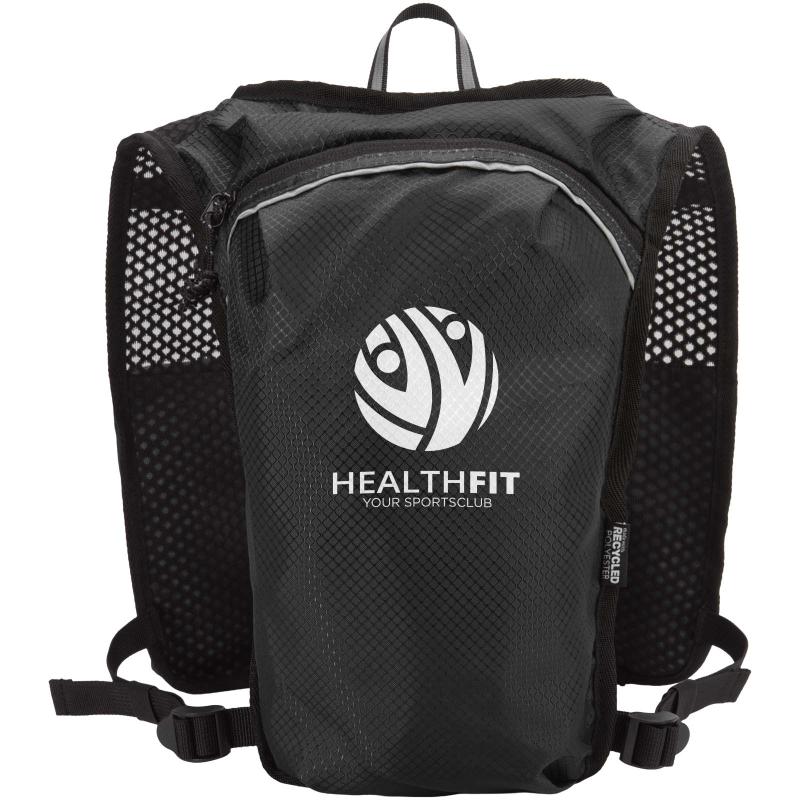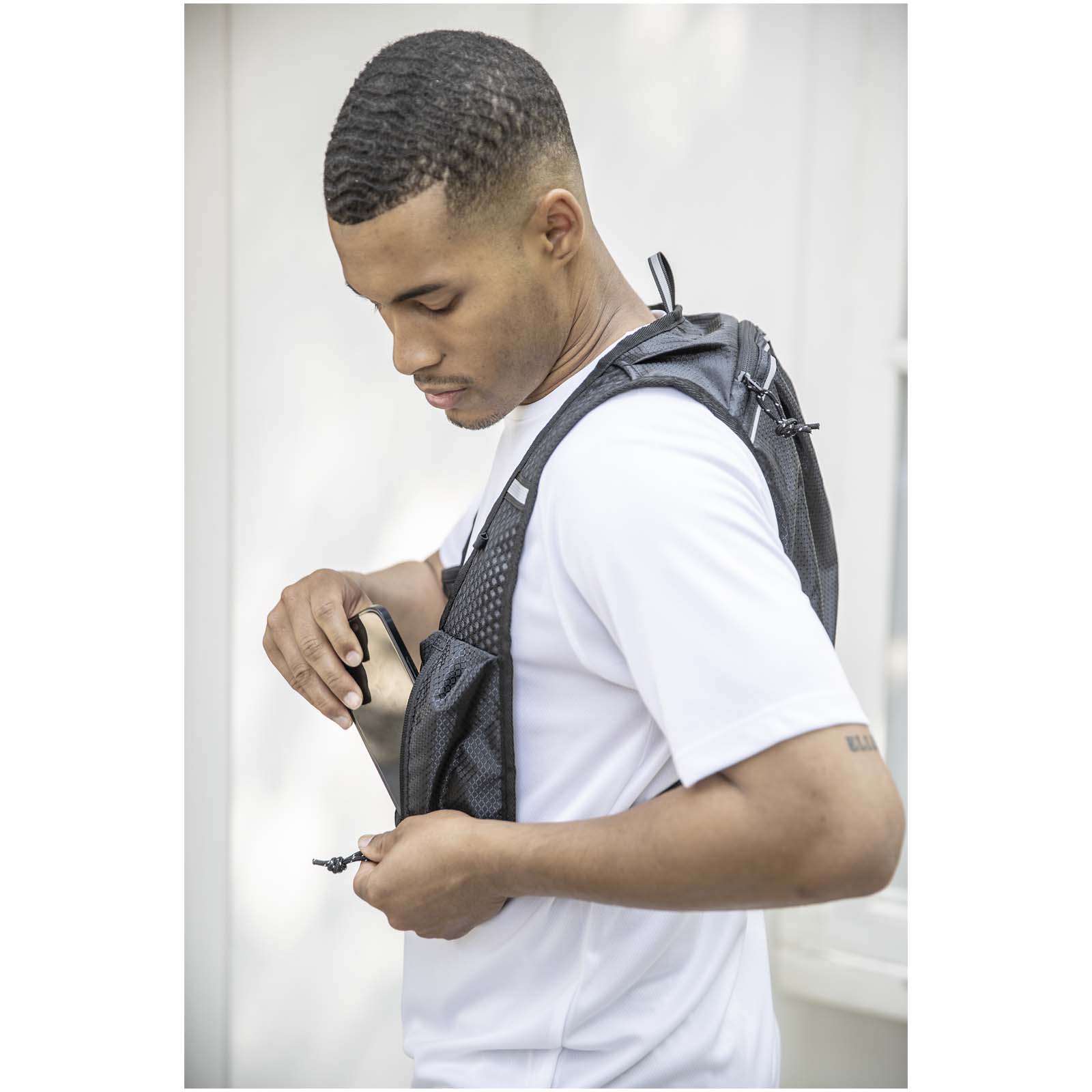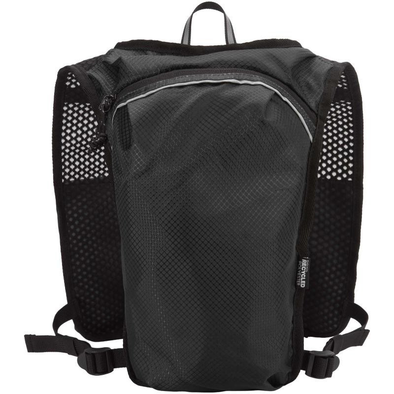 The Nomad running hydration vest pack is made from GRS certified recycled ripstop fabric with a water-repellent finish. It includes GRS certified RPET lining and reflective elements for better visibility. This pack is designed for long-distance running, trail use, and lightweight outdoor activities. The back of the vest has a breathable mesh design for comfort. It includes adjustable shoulder straps and two front chest pockets for bottles, small accessories, or a mobile phone. Inside, there is a separate compartment for a 1.5-litre hydration pack (not included). Volume capacity: 5 litres.
