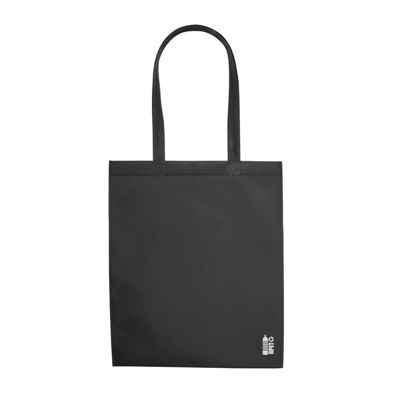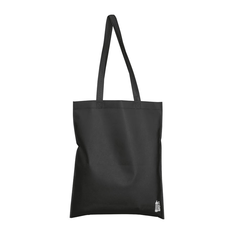 Shopping bag made of non-woven fabric (70 gsm) produced from recycled plastics, featuring two long carrying handles.