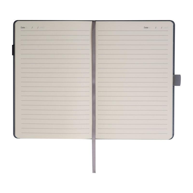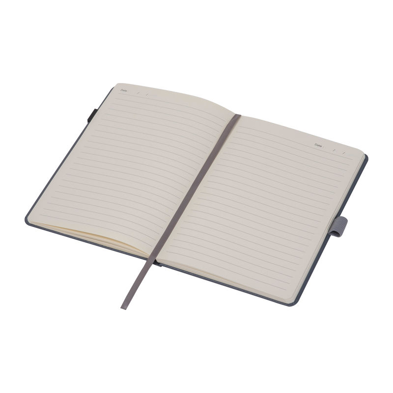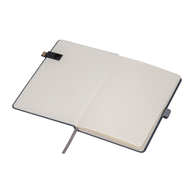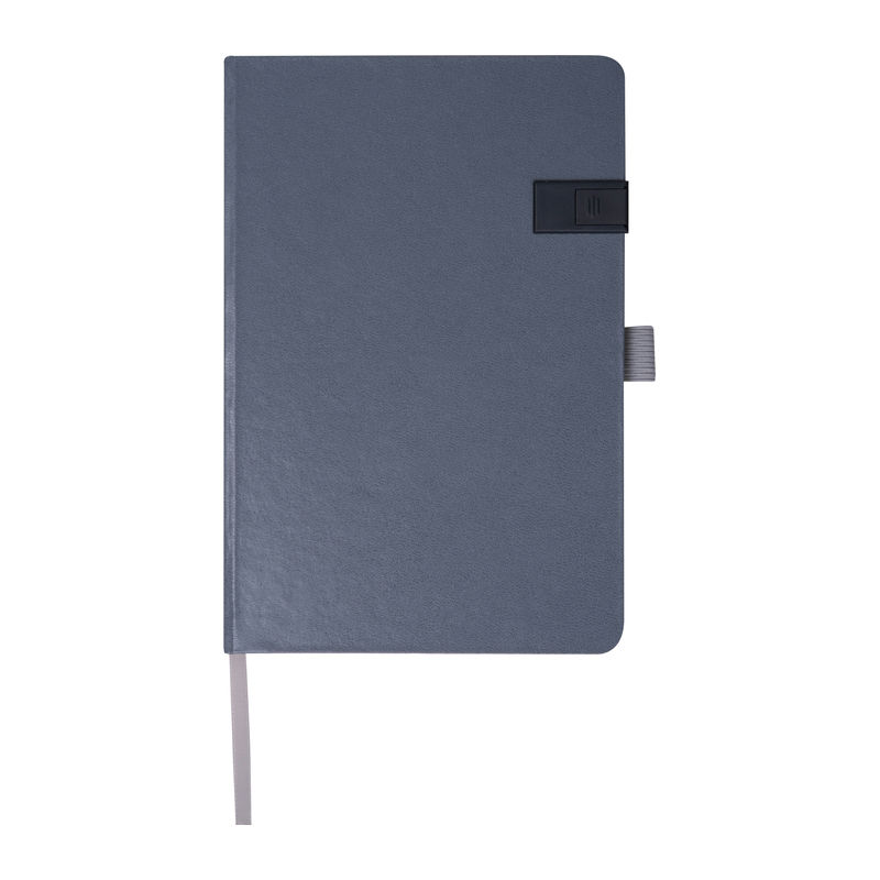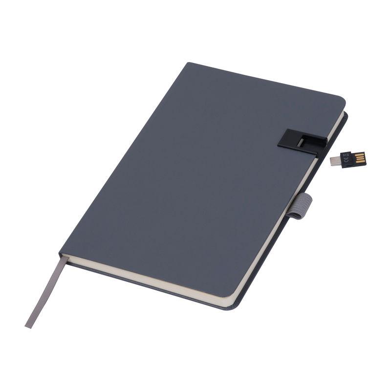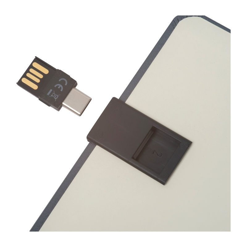 Notebook with 160 lined pages (80 sheets) of recycled paper and an integrated 16 GB USB (Type-C). Features a practical pen loop and an elegant anthracite-colored cover, ideal for the office and on the go.