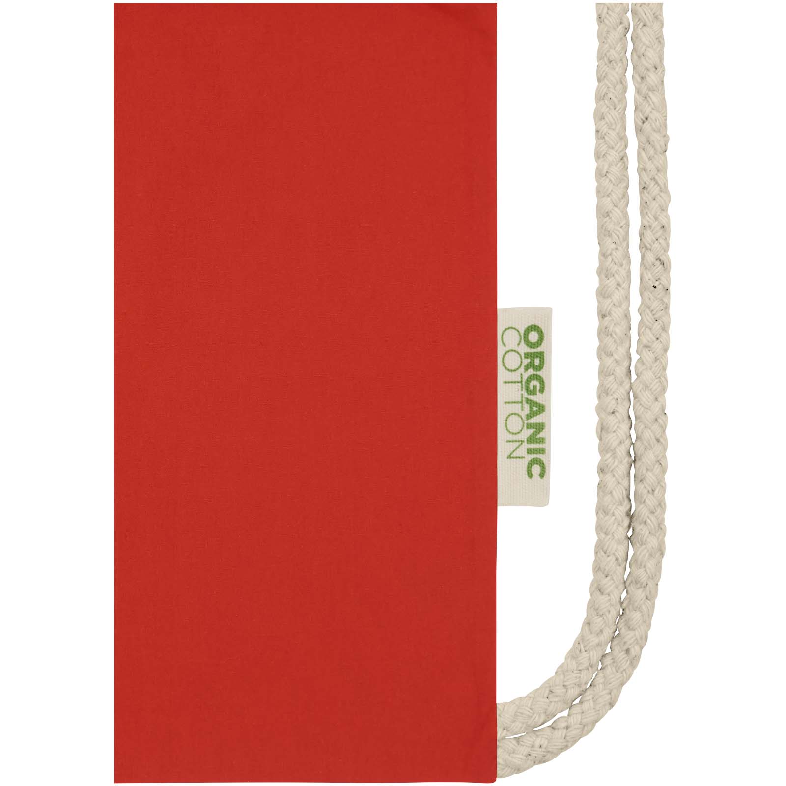 Drawstring bag made from 100% OCS certified 140 g/m² organic cotton originating from India. The bag features a large main compartment and a cotton drawstring closure to keep all belongings safe and secure. Resistance up to 5 kg weight. Volume capacity: 5 litres.