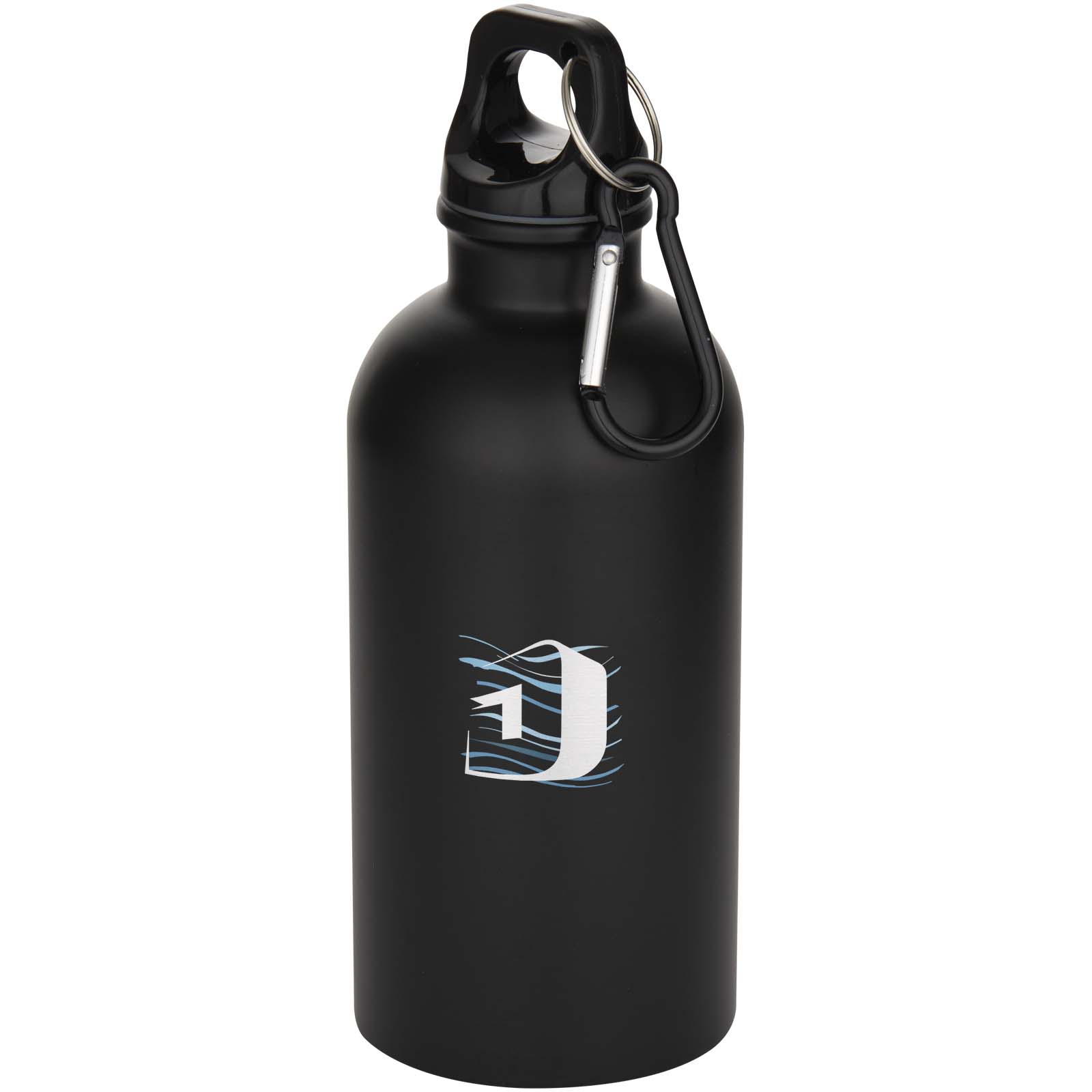 Always stay hydrated with this durable yet lightweight 400 ml water bottle made from RCS certified recycled stainless steel with a matte finish. It’s the perfect companion for sports, day trips or the office. The single-walled Oregon bottle has a twist-off cap and offers plenty of space to add any kind of logo. Clip the attached carabiner (not suitable for climbing) securely to a bag to keep it from getting lost.