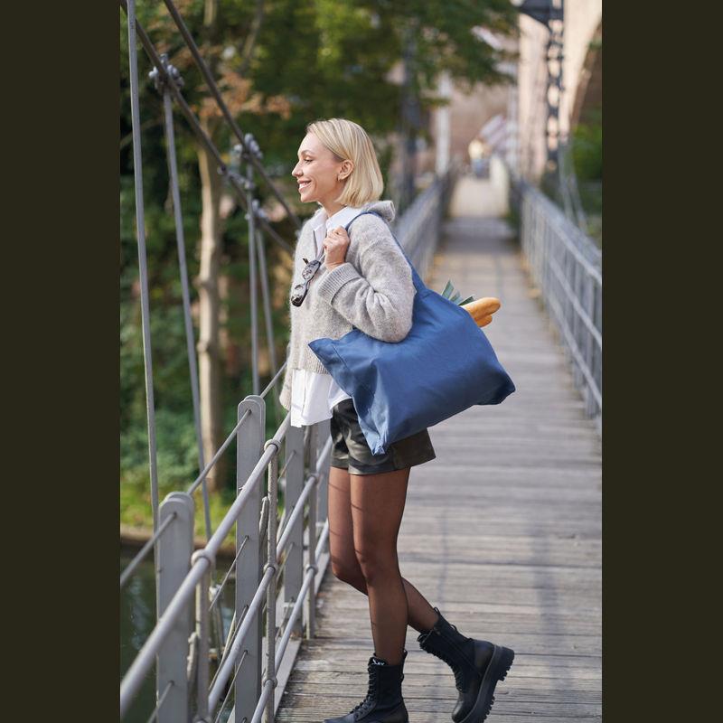 Large shopper made of organic cotton (270gsm). The shopper is a real all-rounder due to its size and a sustainable companion in many situations. Your logo will be printed on one side.