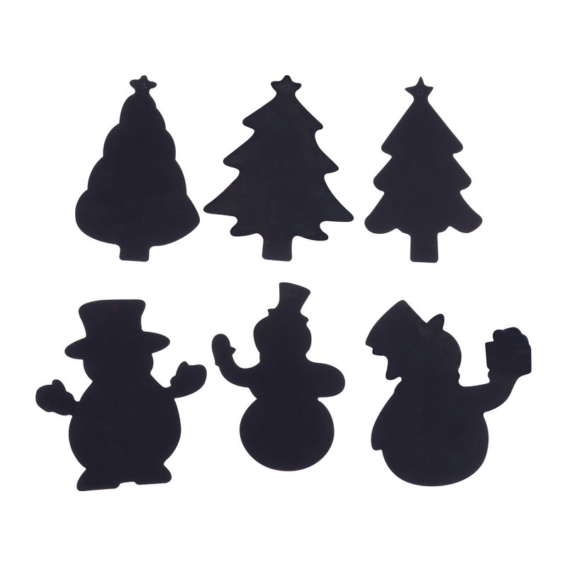 Ornament set featuring festive Christmas designs made of scratch paper with hanging loops. Thanks to the rainbow layer beneath the black surface, scratching reveals vibrant colors—letting creativity run wild. Includes six designs, scratch pen, and hanging loops. Your logo will be placed on the packaging.