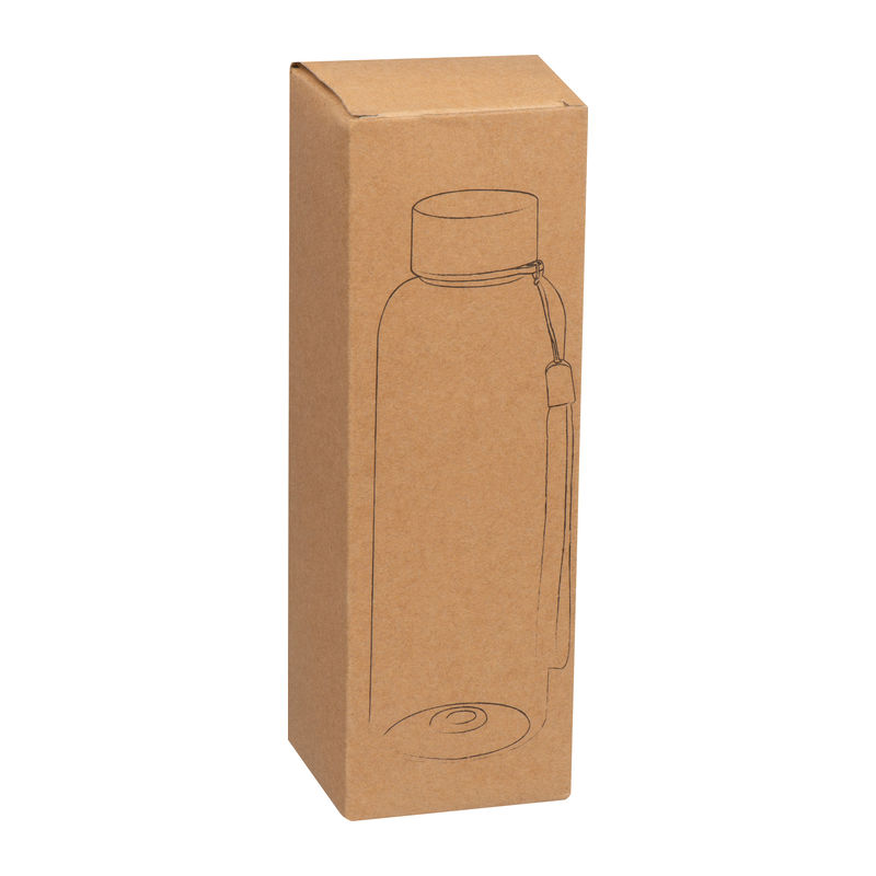 PET drinking bottle with stainless steel lid, hand loop and a capacity of 500 ml. The logo is engraved on the lid.