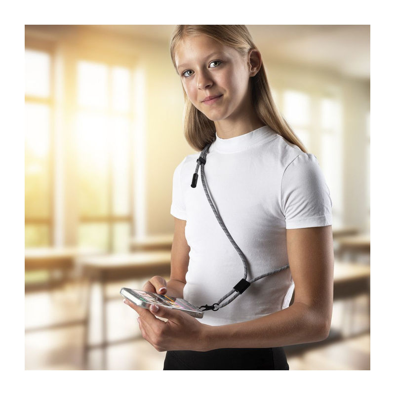 An elegant Pierre Cardin crossbody phone holder lanyard. The lanyard has an integrated 60W fast charging and data cable, input and output with USB Type-C. It includes two safety buckles behind the neck. Packed in a gift box with a certificate of authenticity.